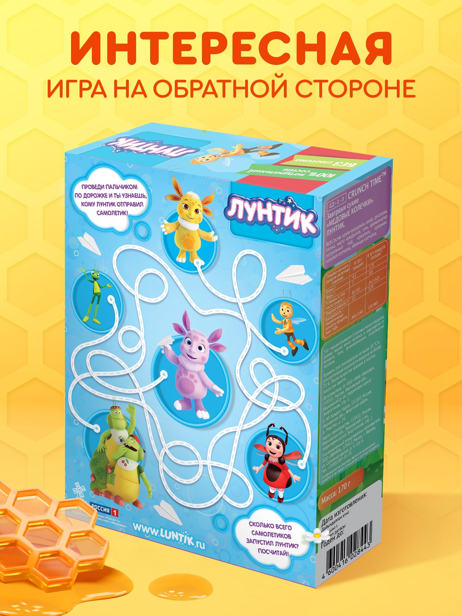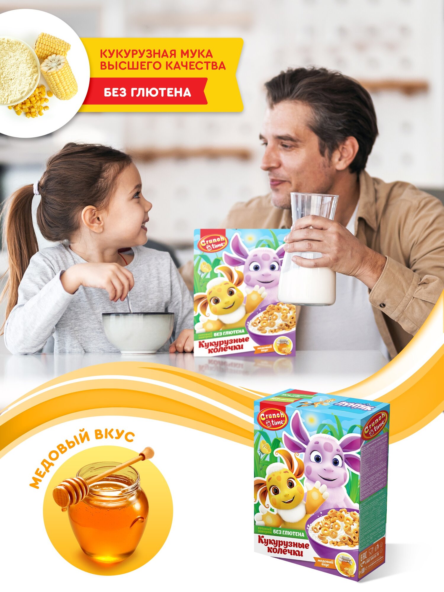 Натуральный сухой завтрак детский Медовые колечки лунтик CRUNCH TIME 170 г Готовый перекус информация: