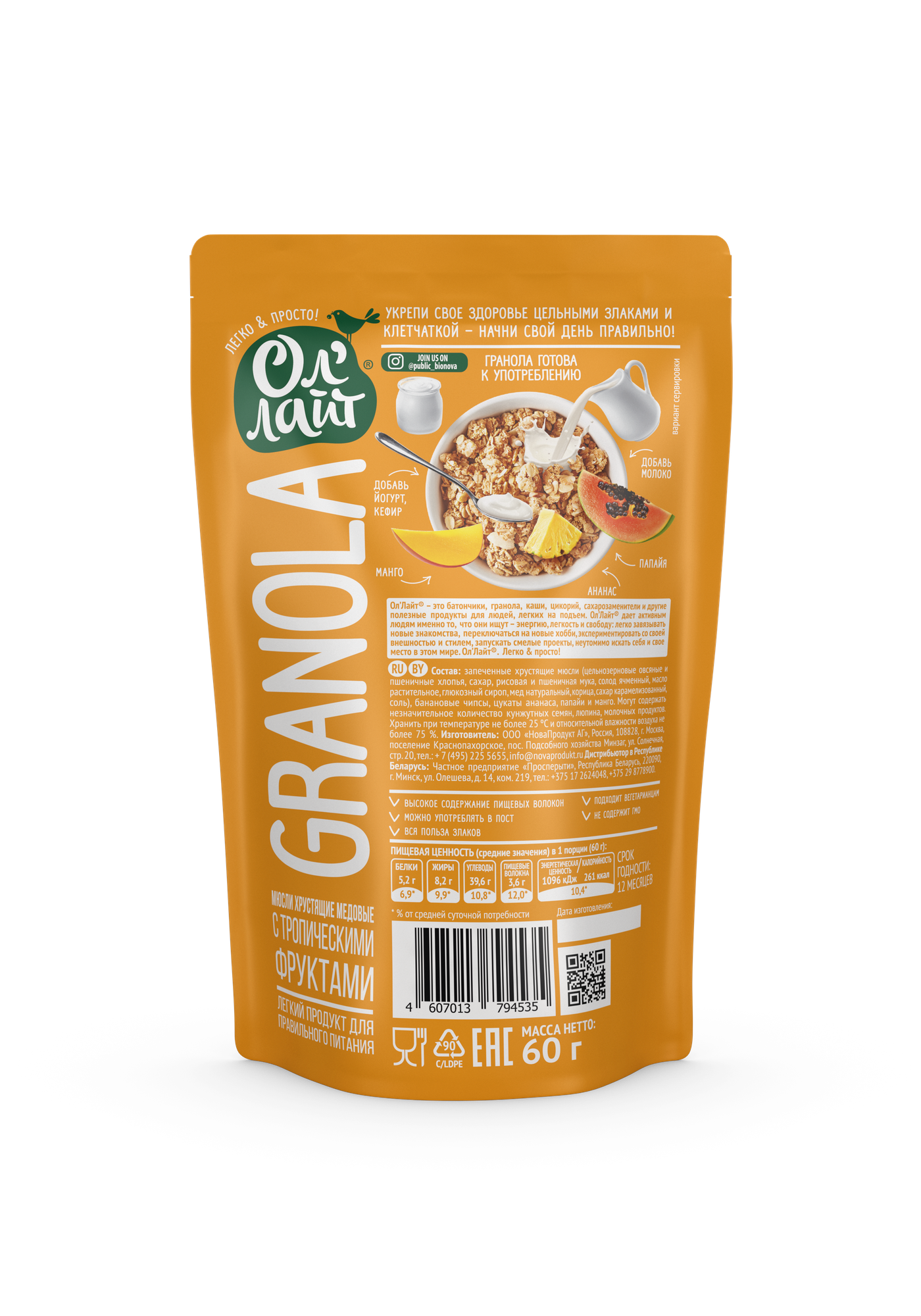 | Не содержит | ГМО / искусственные добавки / искусственные красители / искусственные подсластители / пальмовое масло / сахар |