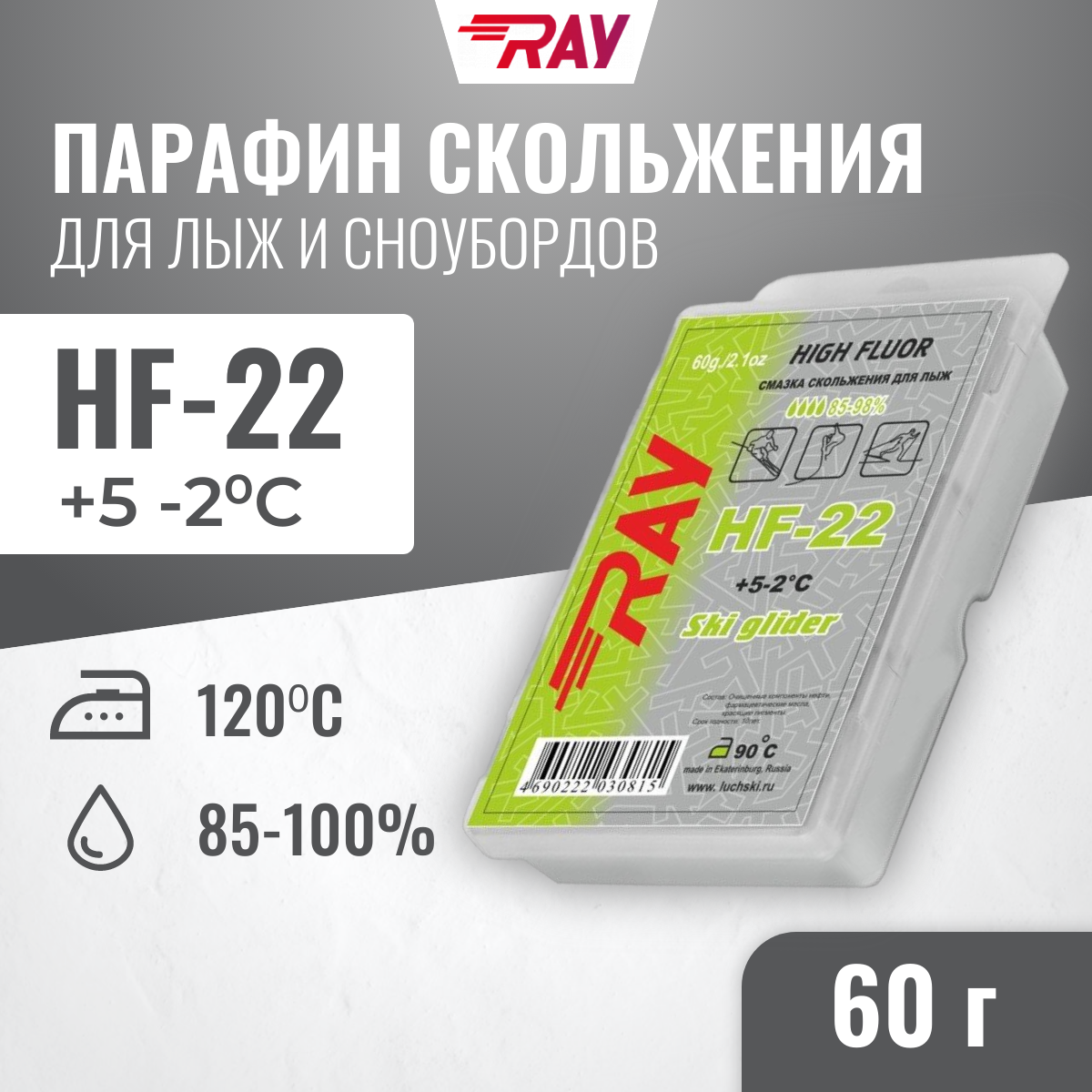 10 цен на Парафин для лыж RAY (Луч) HF-22 от +5 до -2 С высокий фтор, лыжная мазь скольжения, смазка для лыж серебристая 60 гр