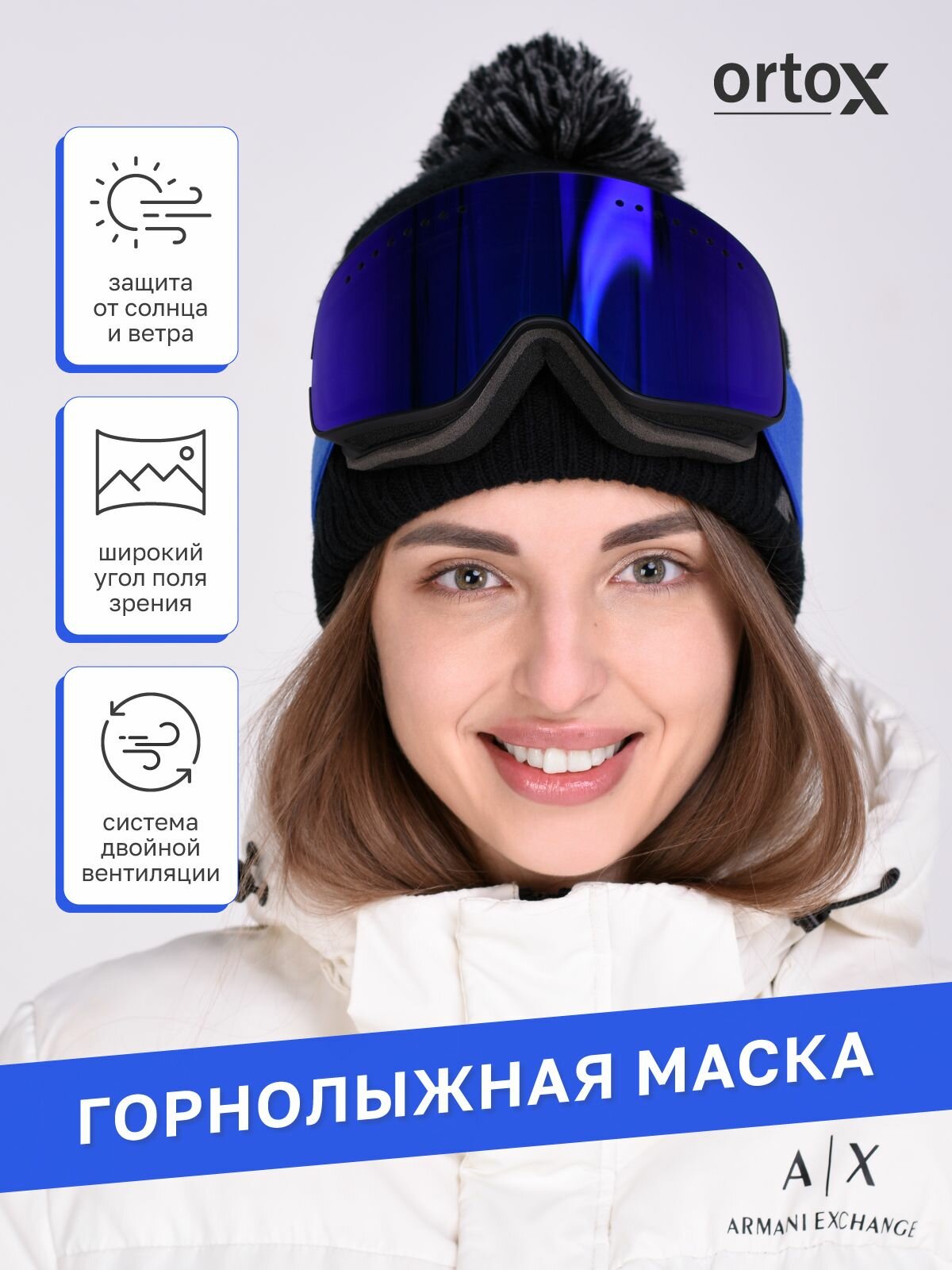 | Особенности | УФ-защита / антибликовое покрытие / вентиляция / защита от запотевания / зеркальное покрытие / ношение поверх очков / съёмная линза |