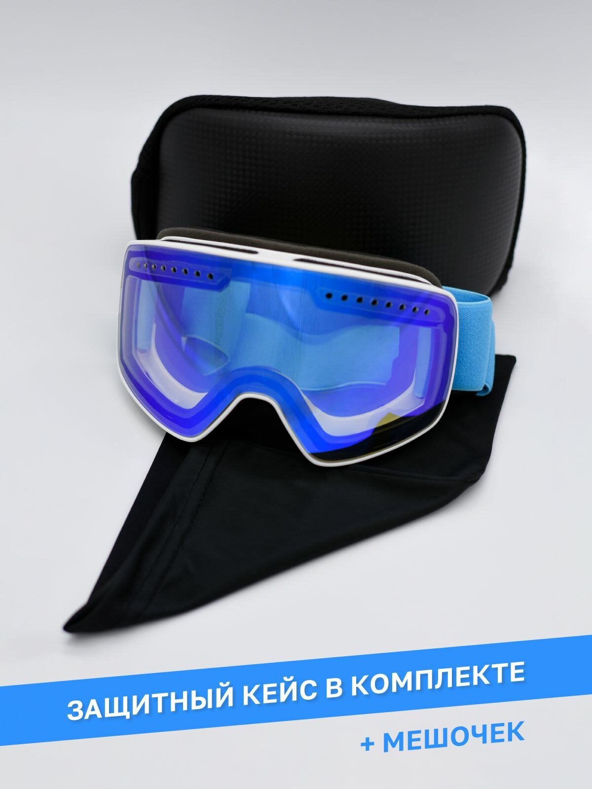 Маска горнолыжная с широким кругом обзора, со съёмной линзой на магнитах, лазурная информация: