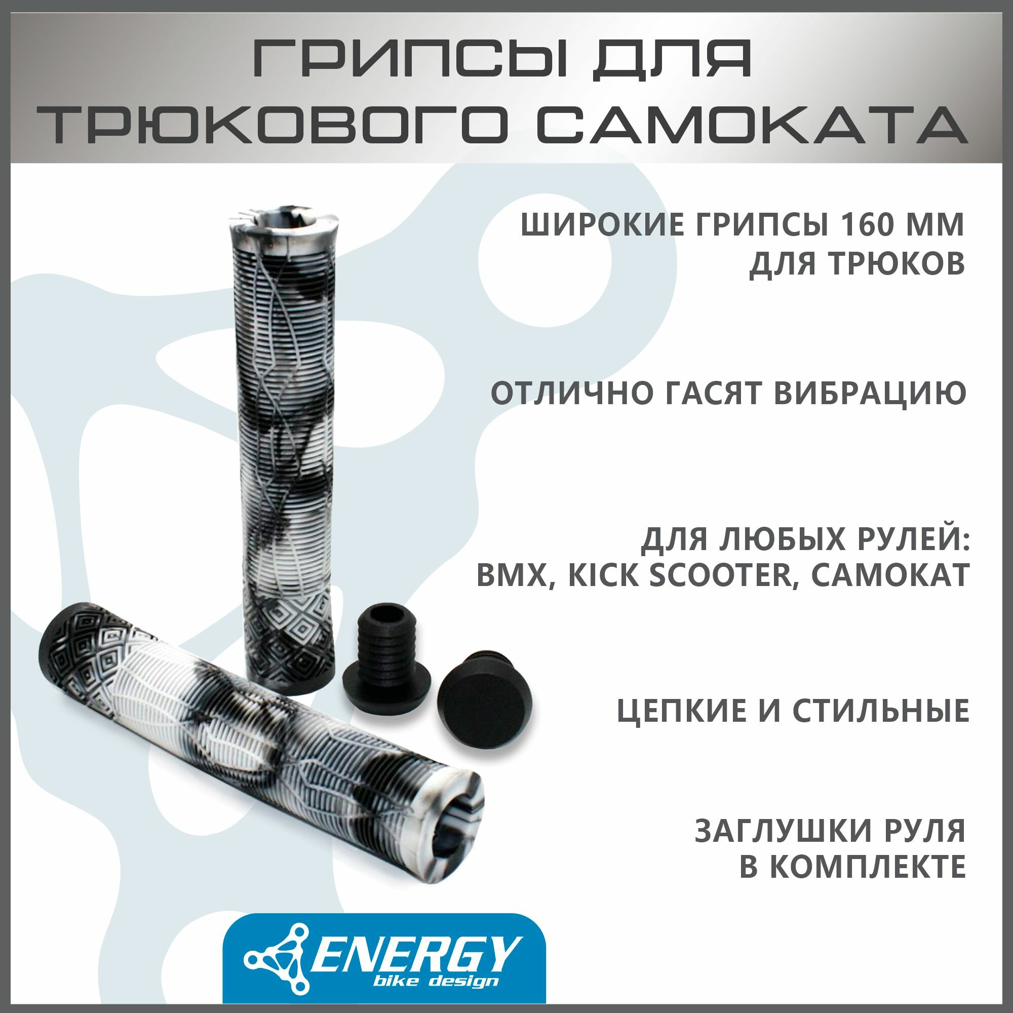 10 цен на Грипсы Energy Kick для трюкового самоката, без колец, резиновые, 165 мм, black/white