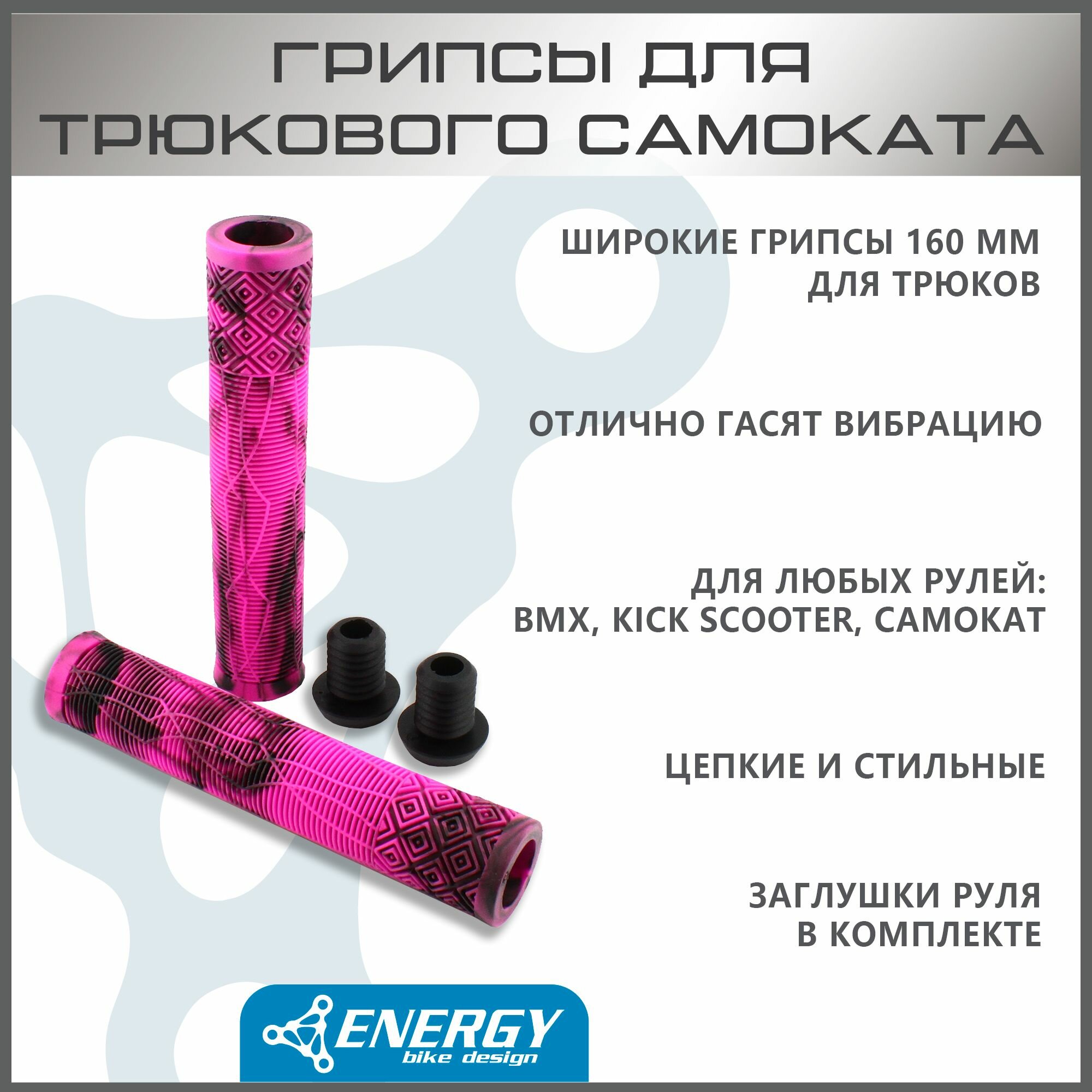 10 цен на Грипсы Energy Kick для трюкового самоката, без колец, резиновые, 165 мм, black/pink