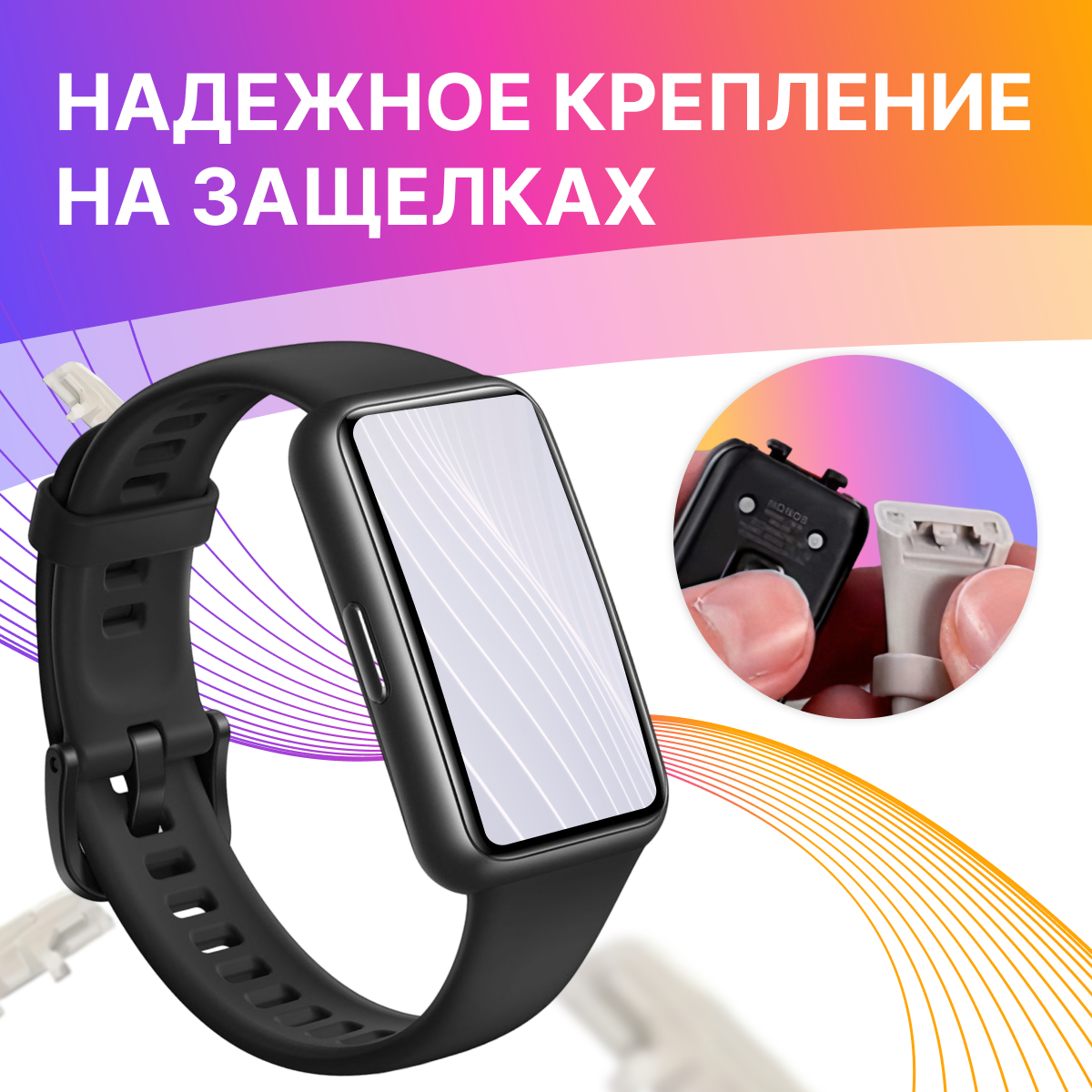 Отзывы на Силиконовый ремешок для Honor Band 7 и Huawei Band 7 / Сменный браслет для умных смарт часов / Фитнес трекера Хонор и Хуавей Бэнд 7, Черный