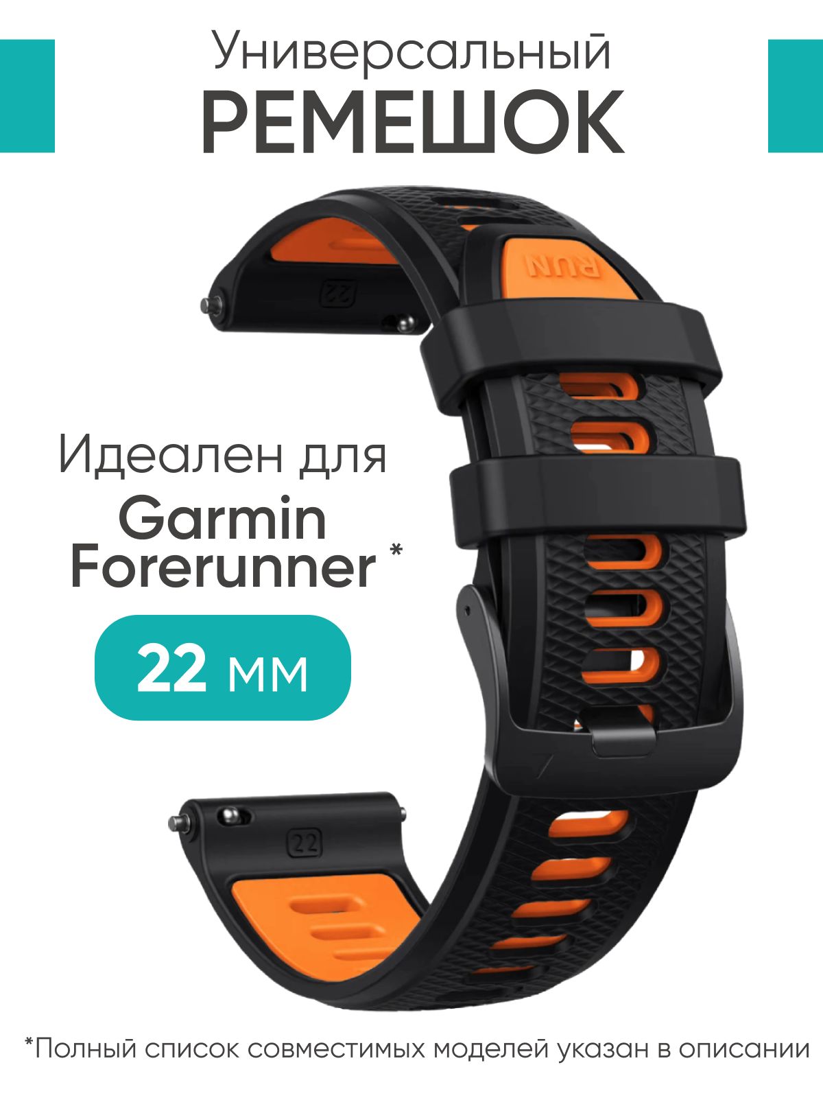 Ремешок для часов Garmin 22 мм черно-оранжевый, Garmin Forerunner 965,265,255 и другие информация: