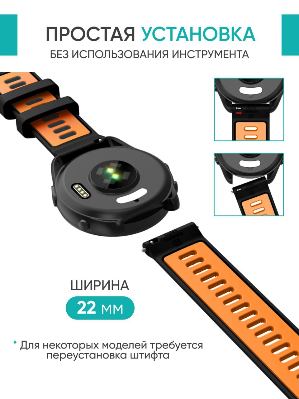 10 цен на Ремешок для часов Garmin 22 мм черно-оранжевый, Garmin Forerunner 965,265,255 и другие