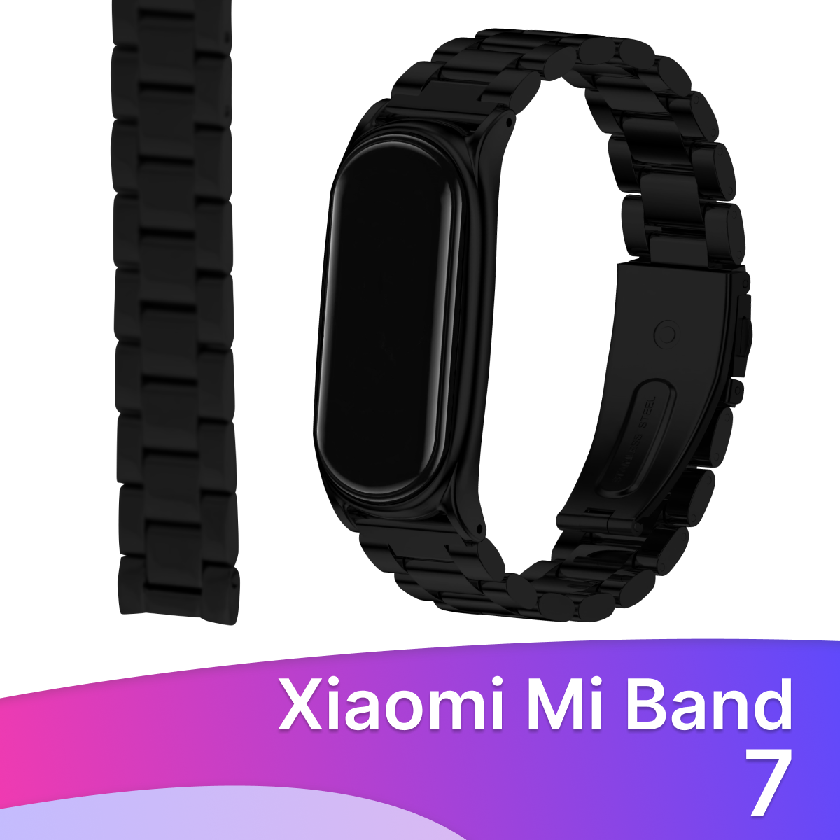 Отзывы на Металлический ремешок для фитнес браслета Xiaomi Mi Band 7 / Сменный блочный браслет для смарт часов на застежке Сяоми Ми Бэнд 7 / Черный матовый