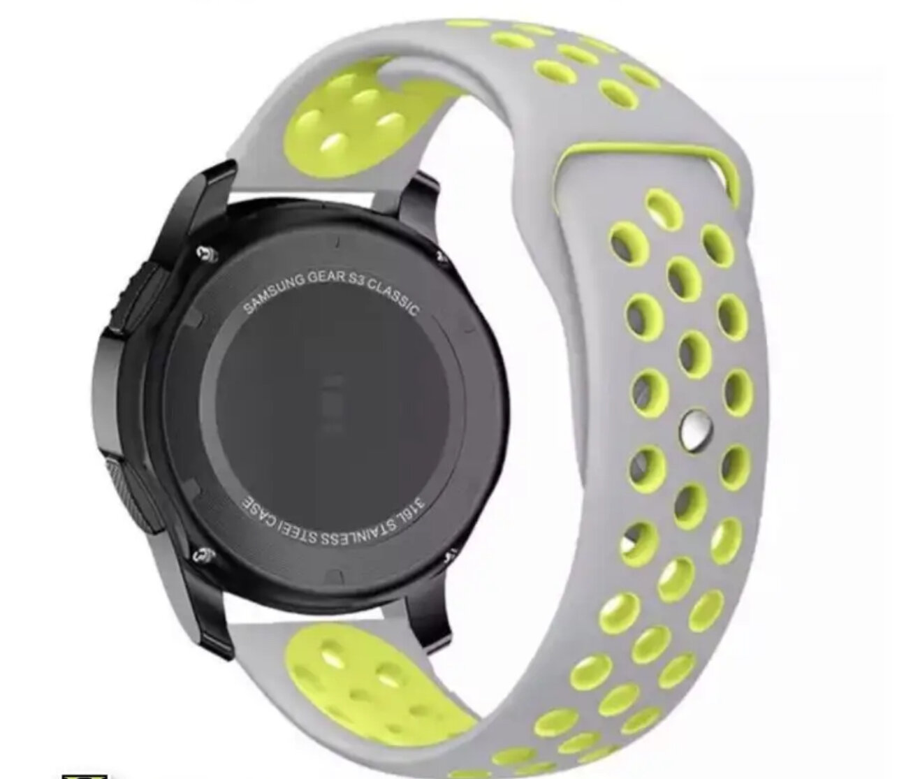 Отзывы на Универсальный спортивный гвоздик ремешок для Huawei, Samsung, Garmin, 22 мм. серый/желтый.