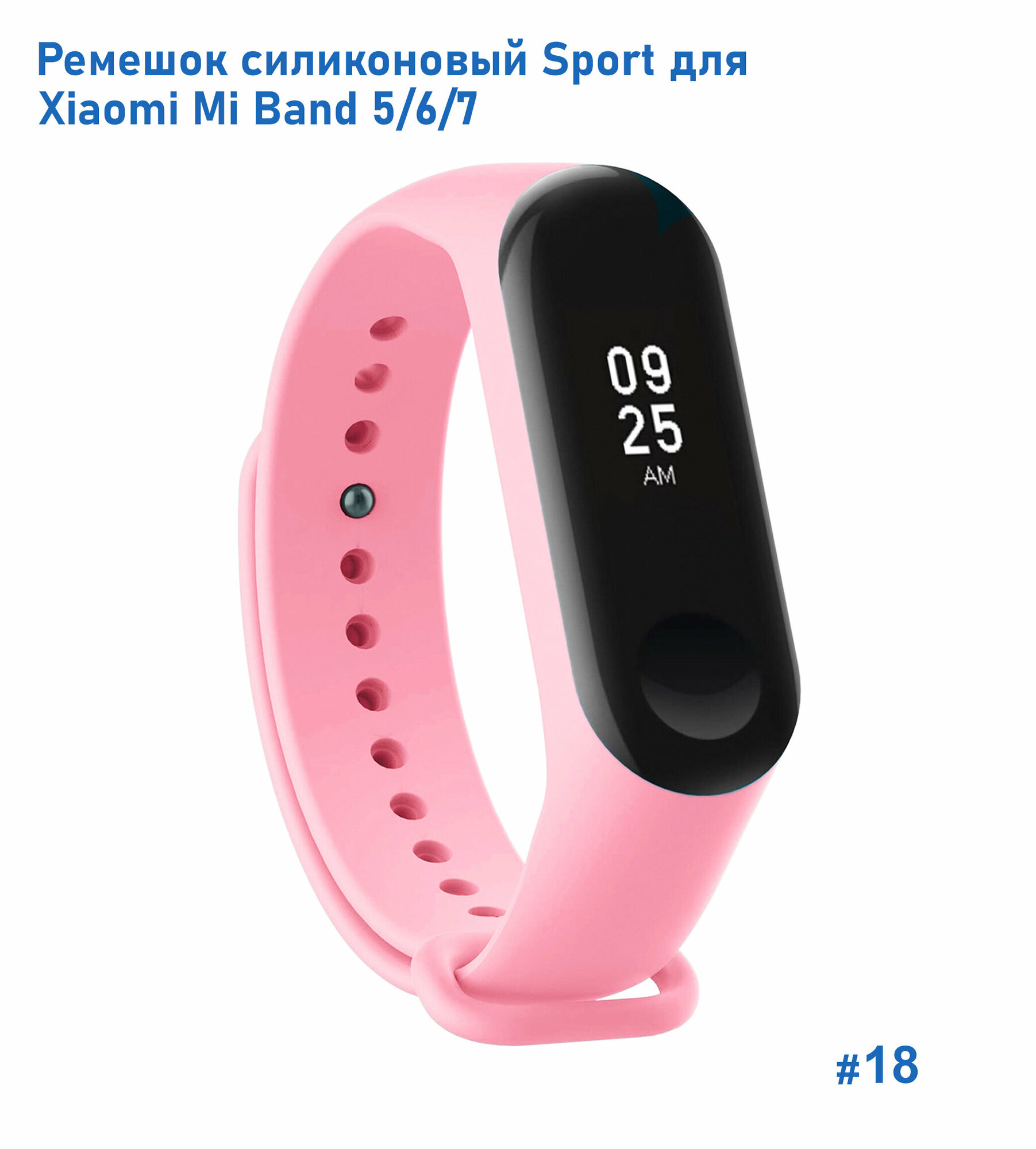 Отзывы на Ремешок силиконовый Sport для Xiaomi Mi Band 5/6/7, на кнопке, светло-розовый (18)
