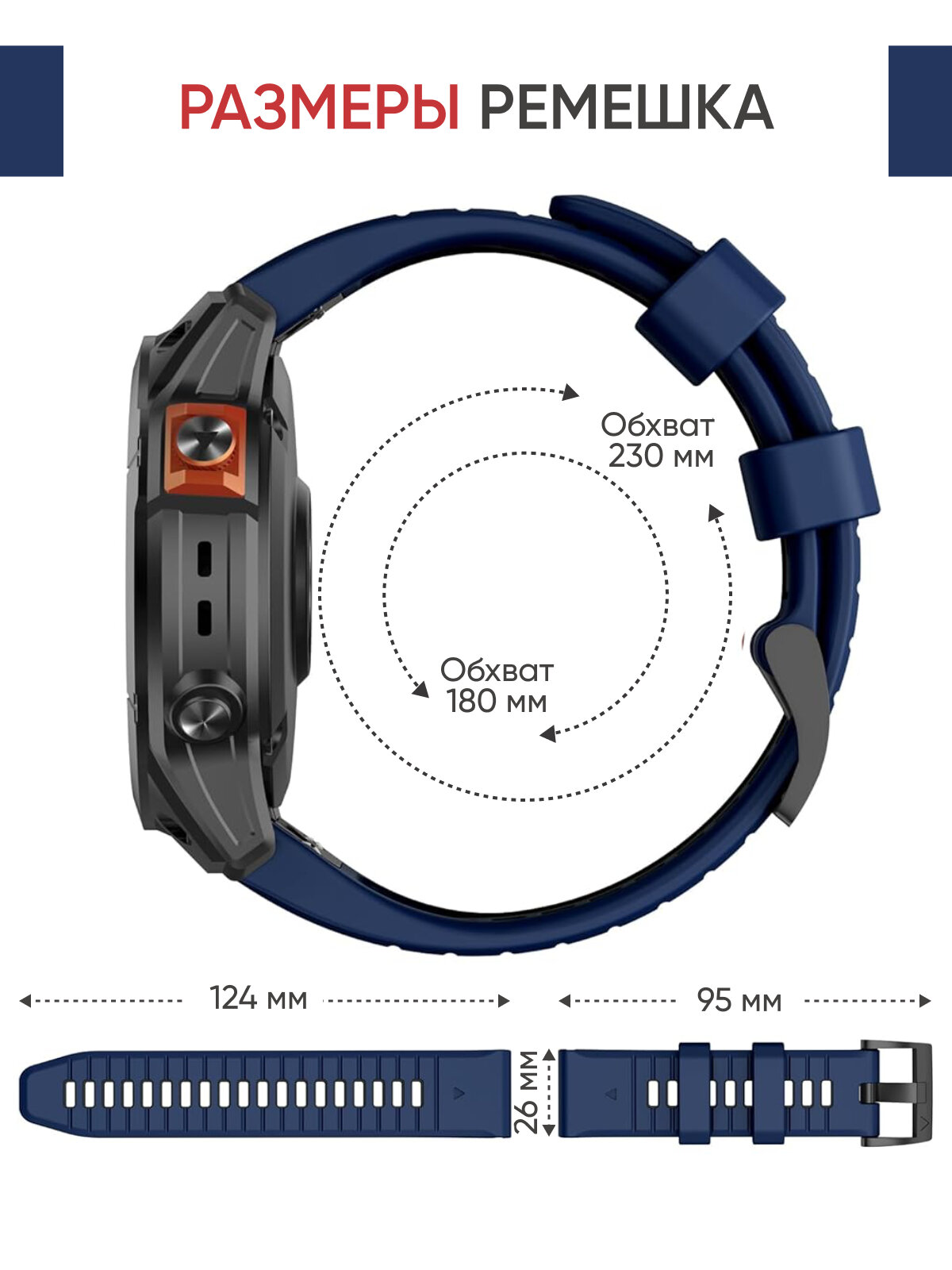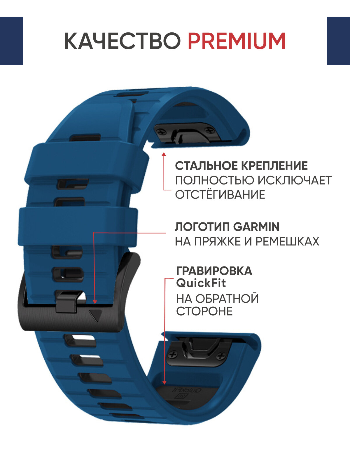 Ремешок силиконовый 26 мм для часов Garmin синий. Для Garmin Fenix 7X Pro, 6X Pro, Tactix и др. 1 782 ₽