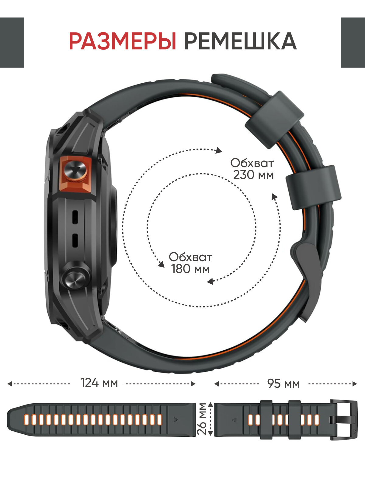 Ремешок силиконовый 26 мм для часов Garmin серо-оранжевый. Для Garmin Fenix 7X Pro, 6X Pro, Tactix и др. 1 830 ₽