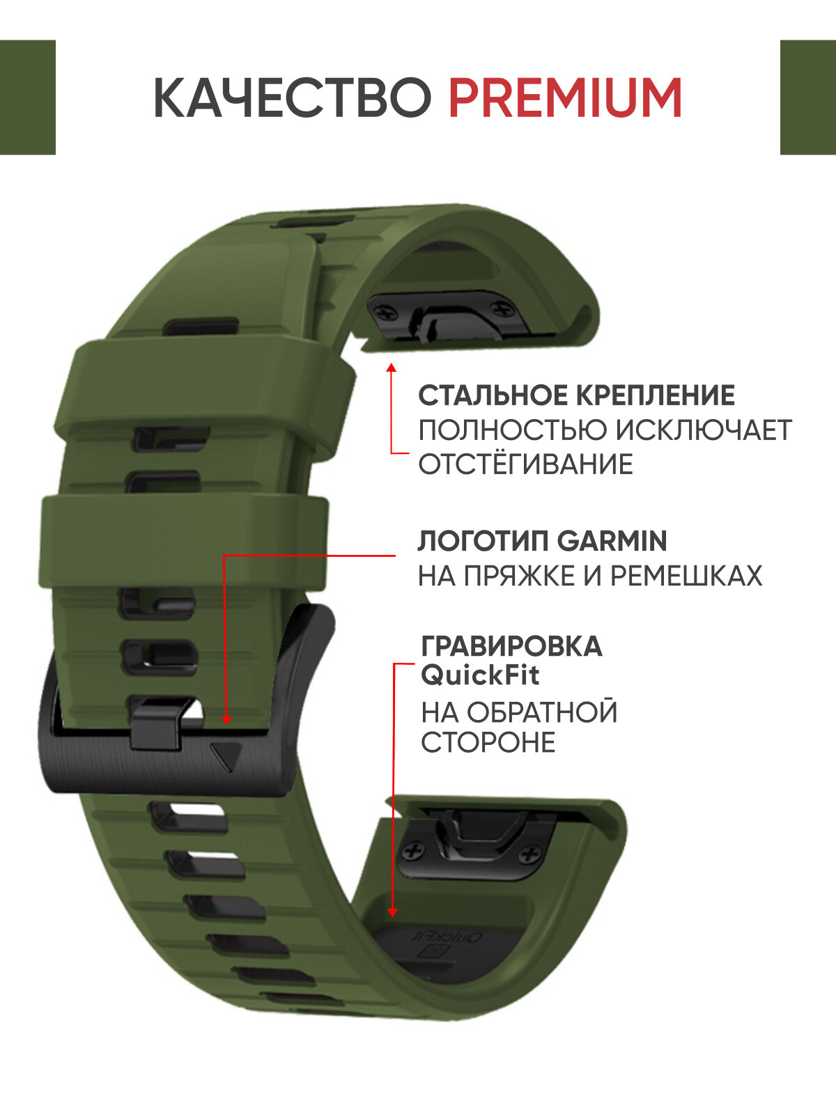 10 цен на Ремешок силиконовый 22 мм для часов Garmin зеленый