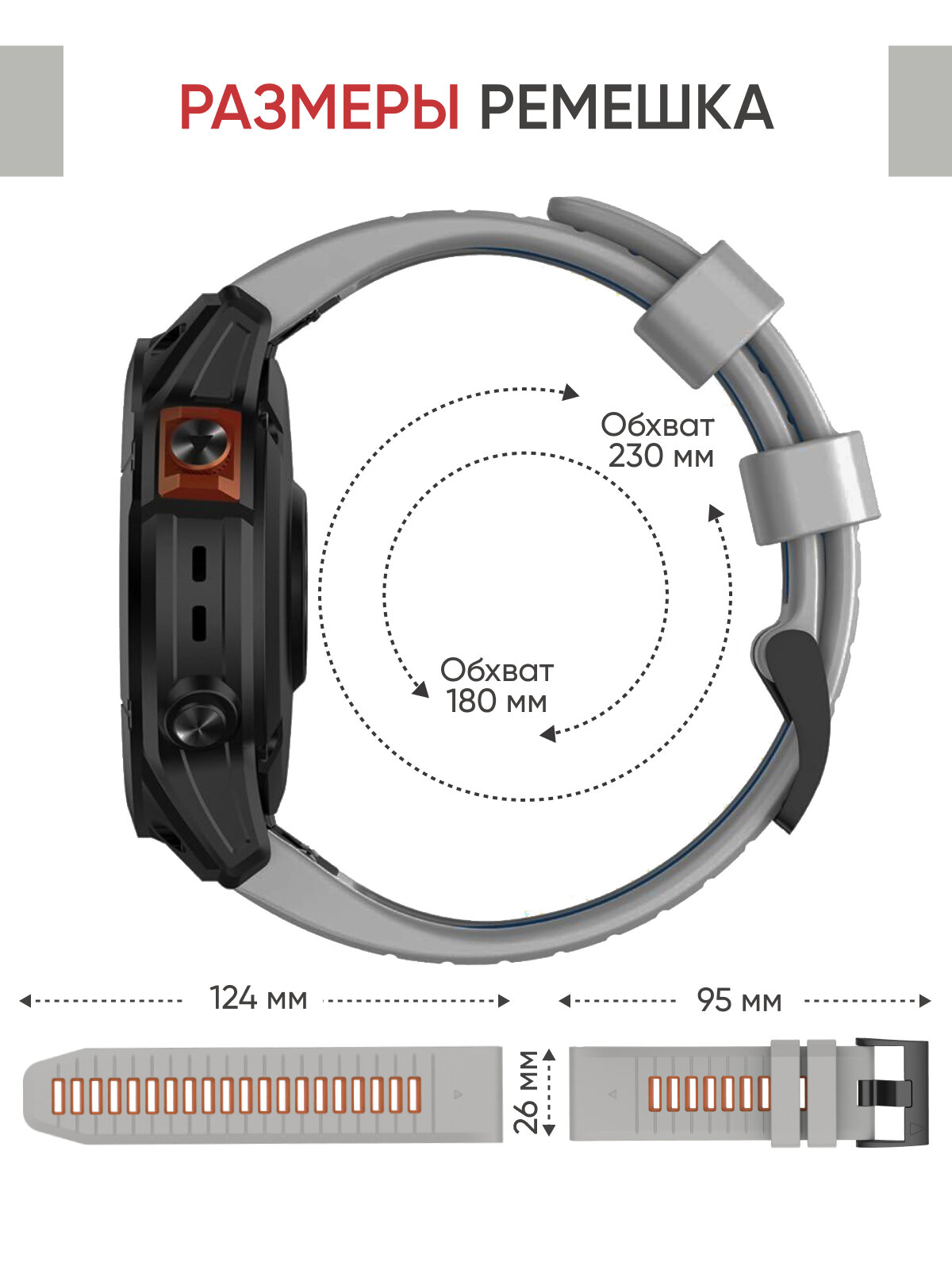 Ремешок силиконовый 26 мм для часов Garmin серо-оранжевый. Для Garmin Fenix 7X Pro, 6X Pro, Tactix и др. 1 830 ₽