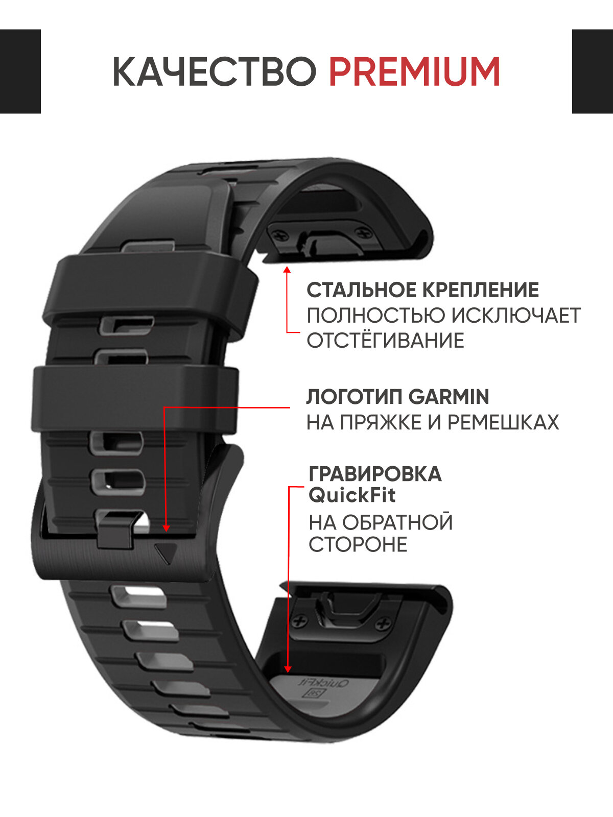 Отзывы на Ремешок силиконовый 26 мм для часов Garmin черно-серый. Для Garmin Fenix 7X Pro, 6X Pro, Tactix и др.
