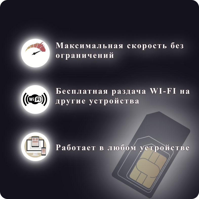 SIM-карта Безлимит по РФ с Wi Fi, для всех устройств, 990 р / в месяц/ сим карта