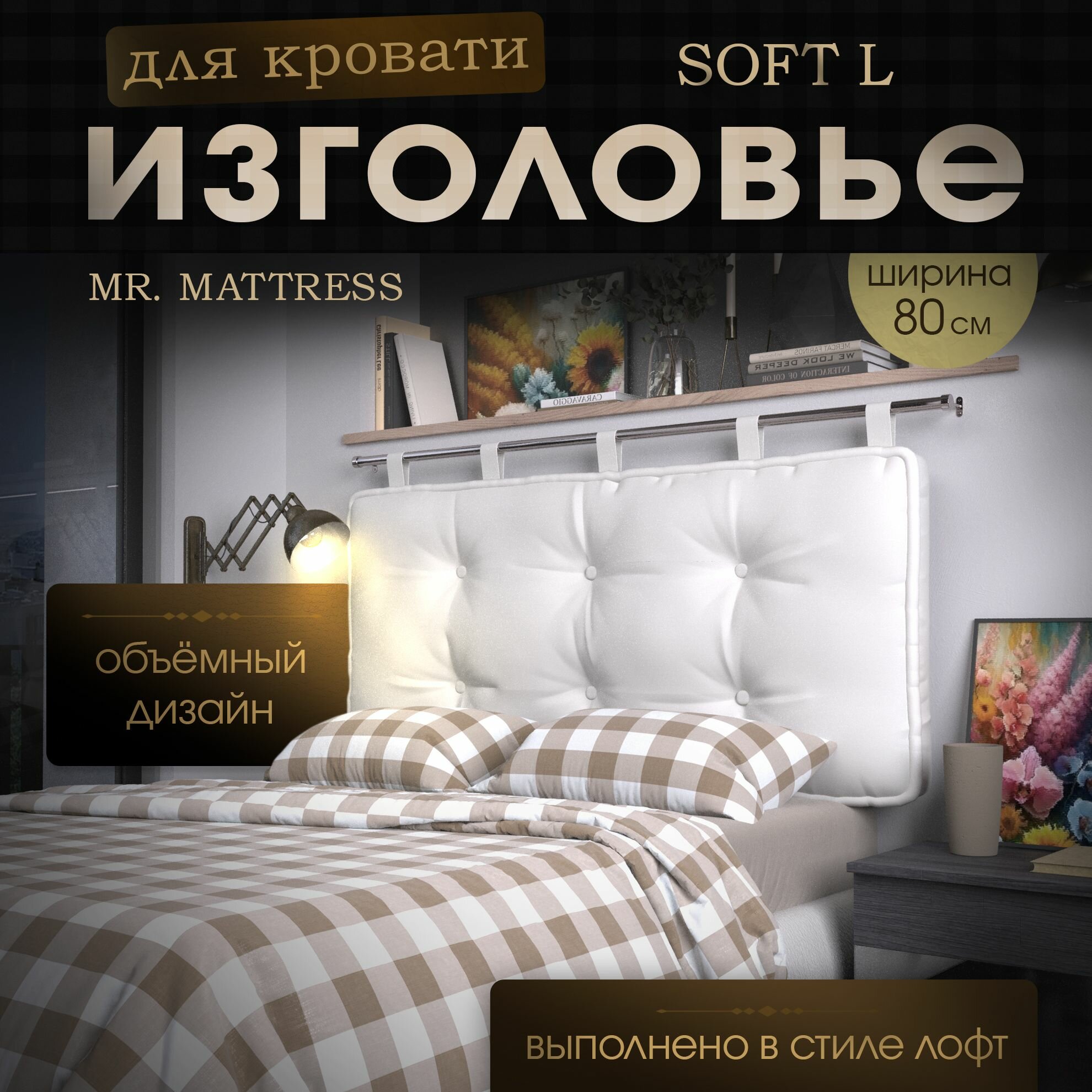 Набивное изголовье-подушка для кровати Mr. Mattress Soft L 80x70 White информация: