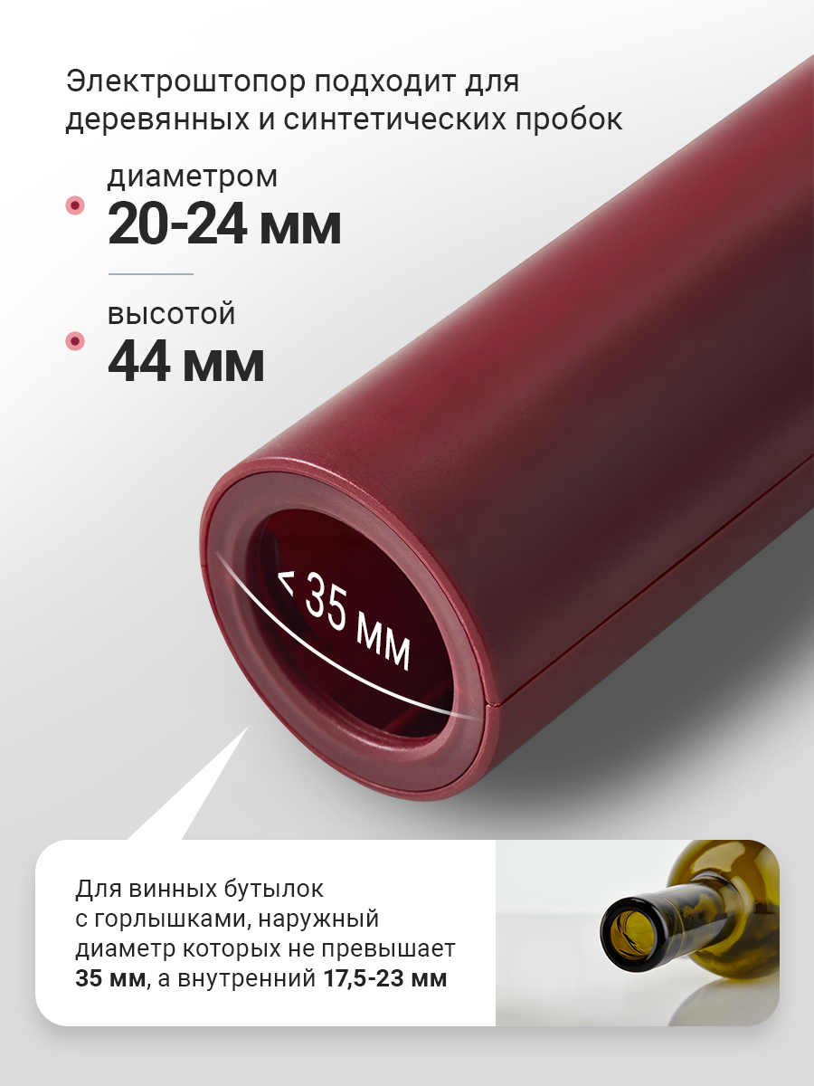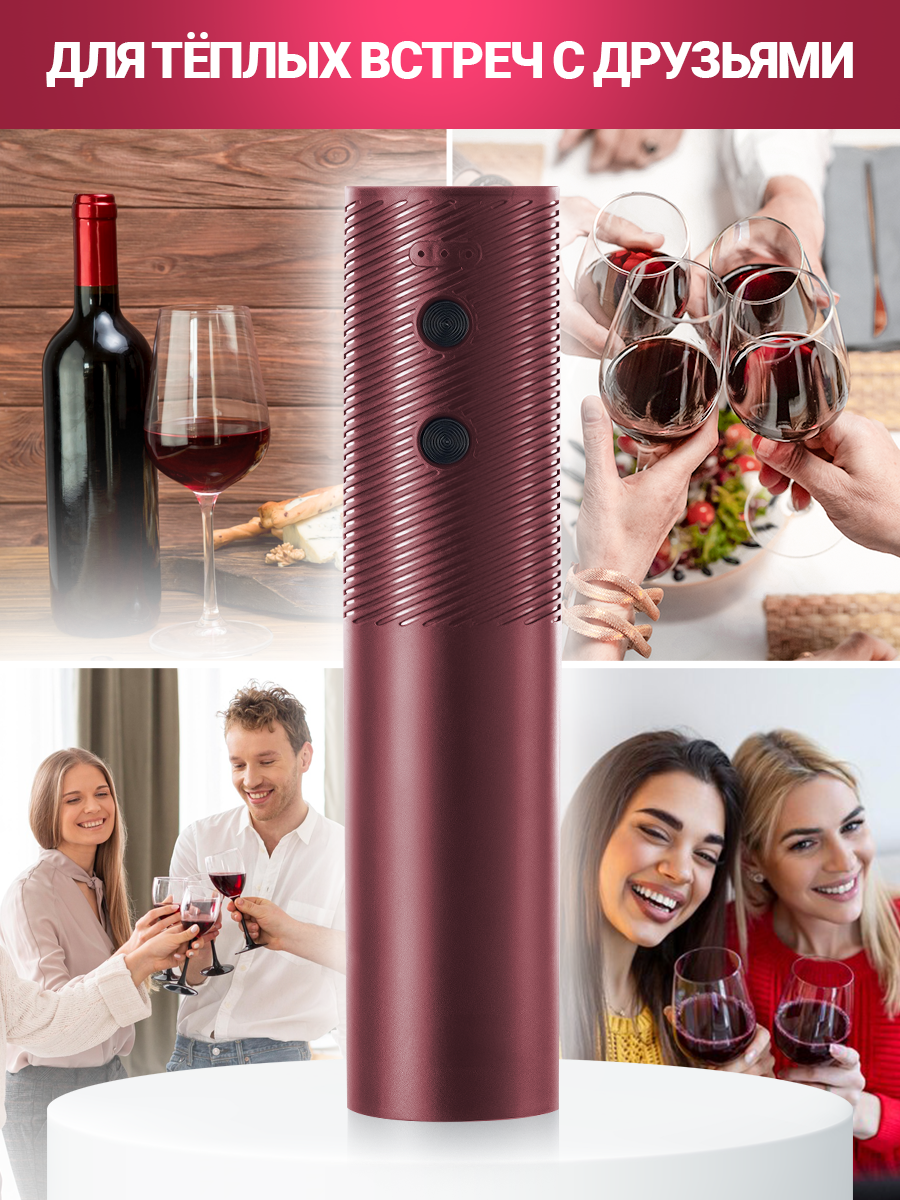 10 цен на Штопор электрический для вина, бордовый