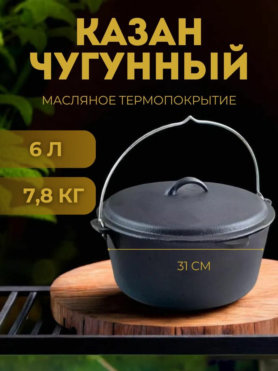 Казан чугунный диаметр 31 см, объем 6 литров информация: