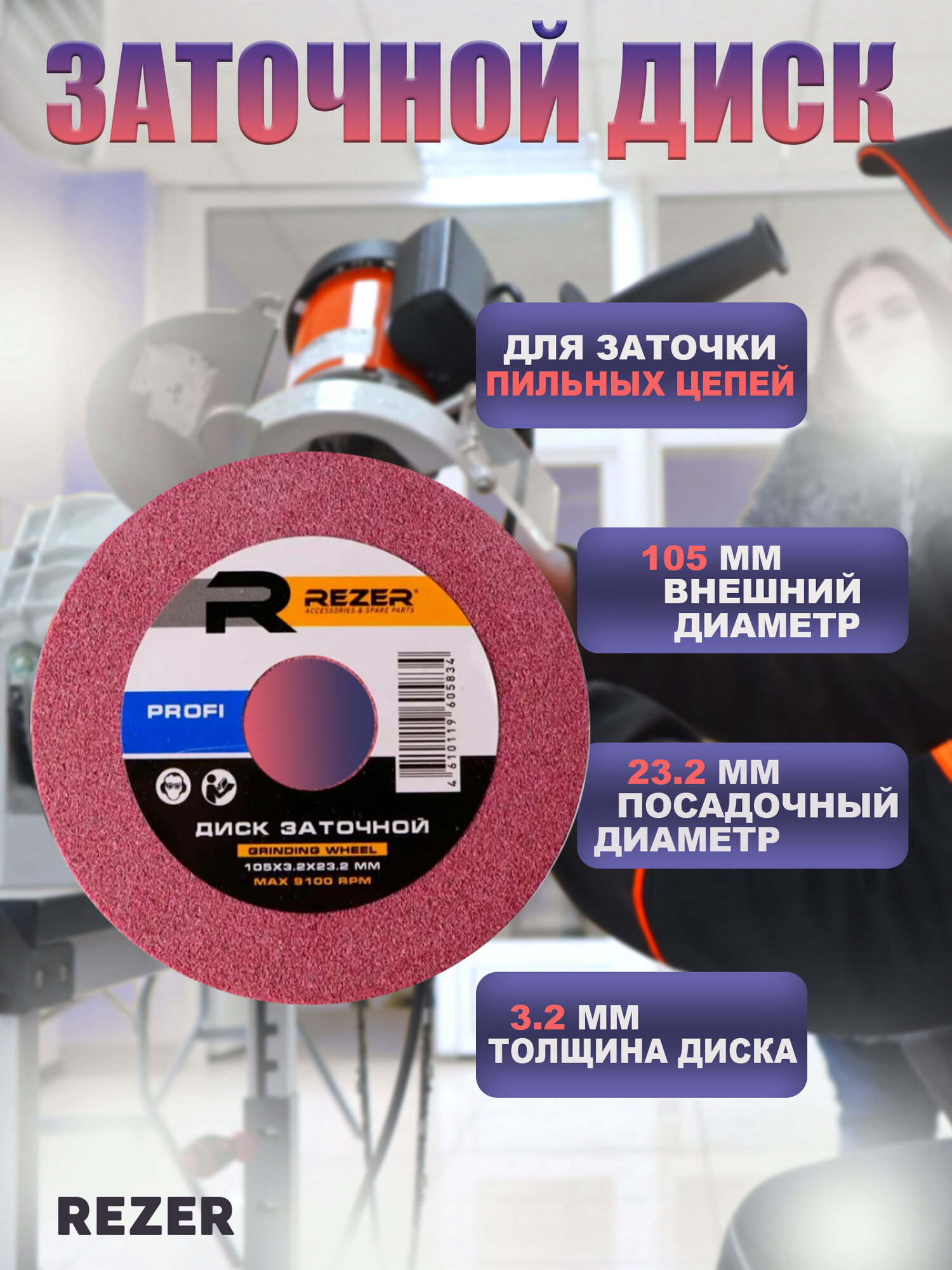 10 цен на Диск заточной для станка Rezer Profi для заточки цепей, 105х3,2х23,2 мм