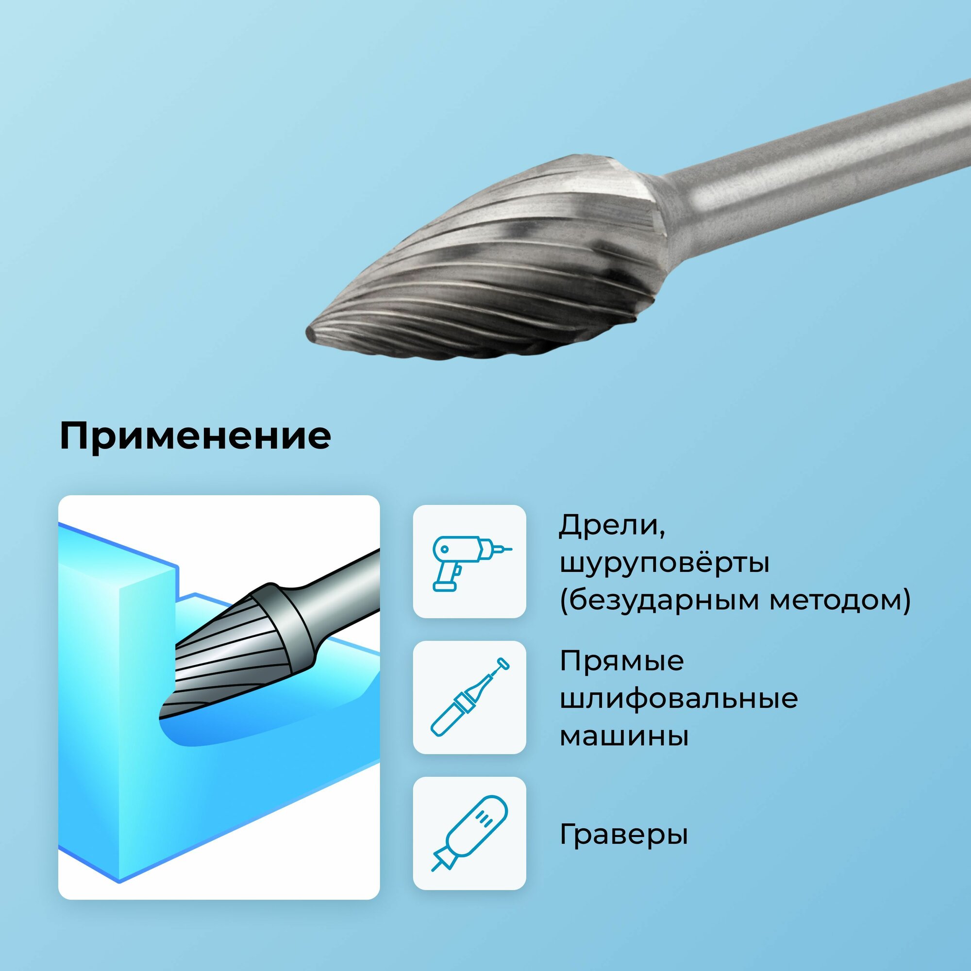 Борфреза твердосплавная NORGAU Industrial параболическая 6 мм, форма G, SCM 1 058 ₽