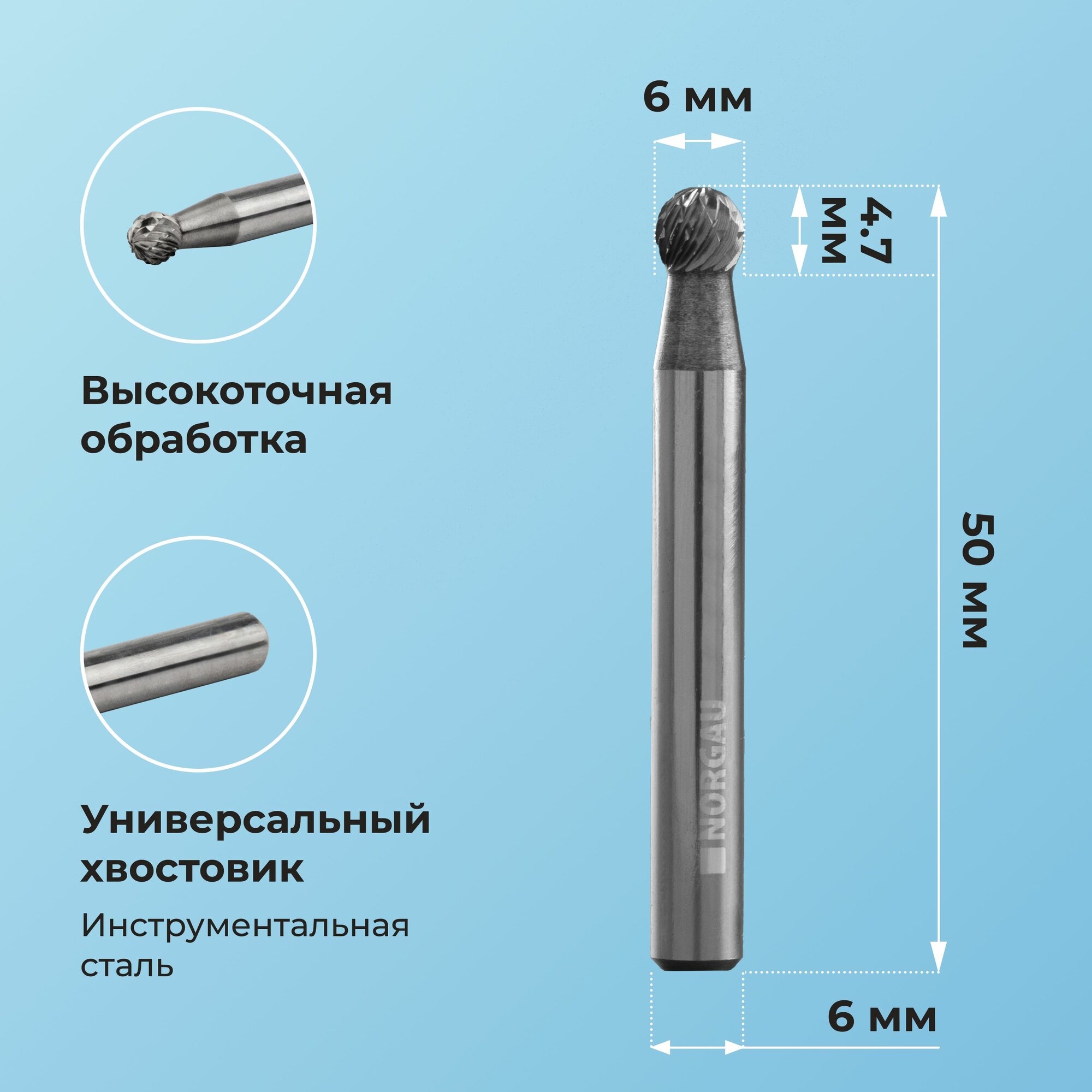 10 цен на Борфреза твердосплавная NORGAU Industrial сферическая 6 мм, форма D, DCM