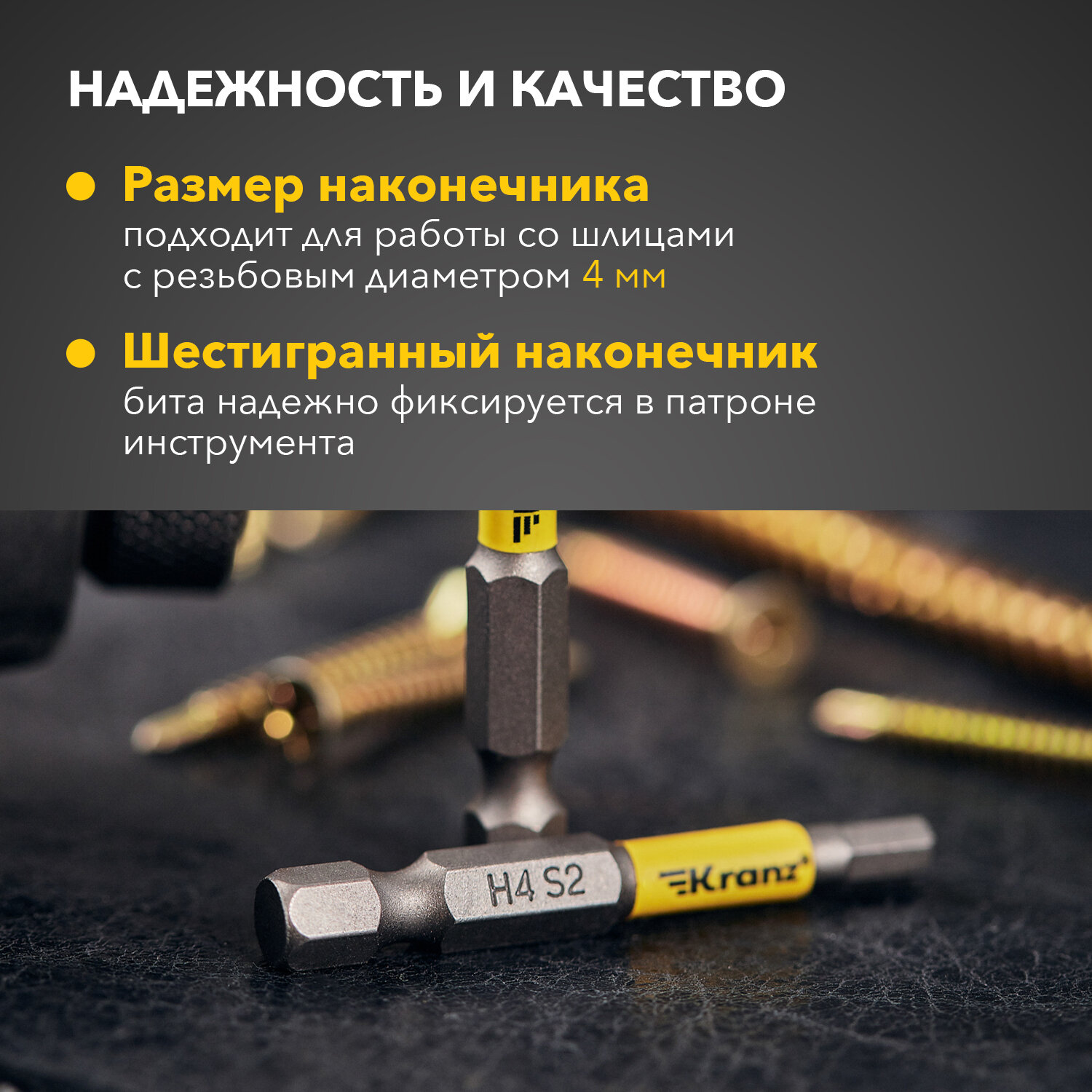 Отзывы на Бита износостойкая шестигранная для шуруповерта KRANZ с магнитным наконечником HEX4х50 мм, 2 штуки