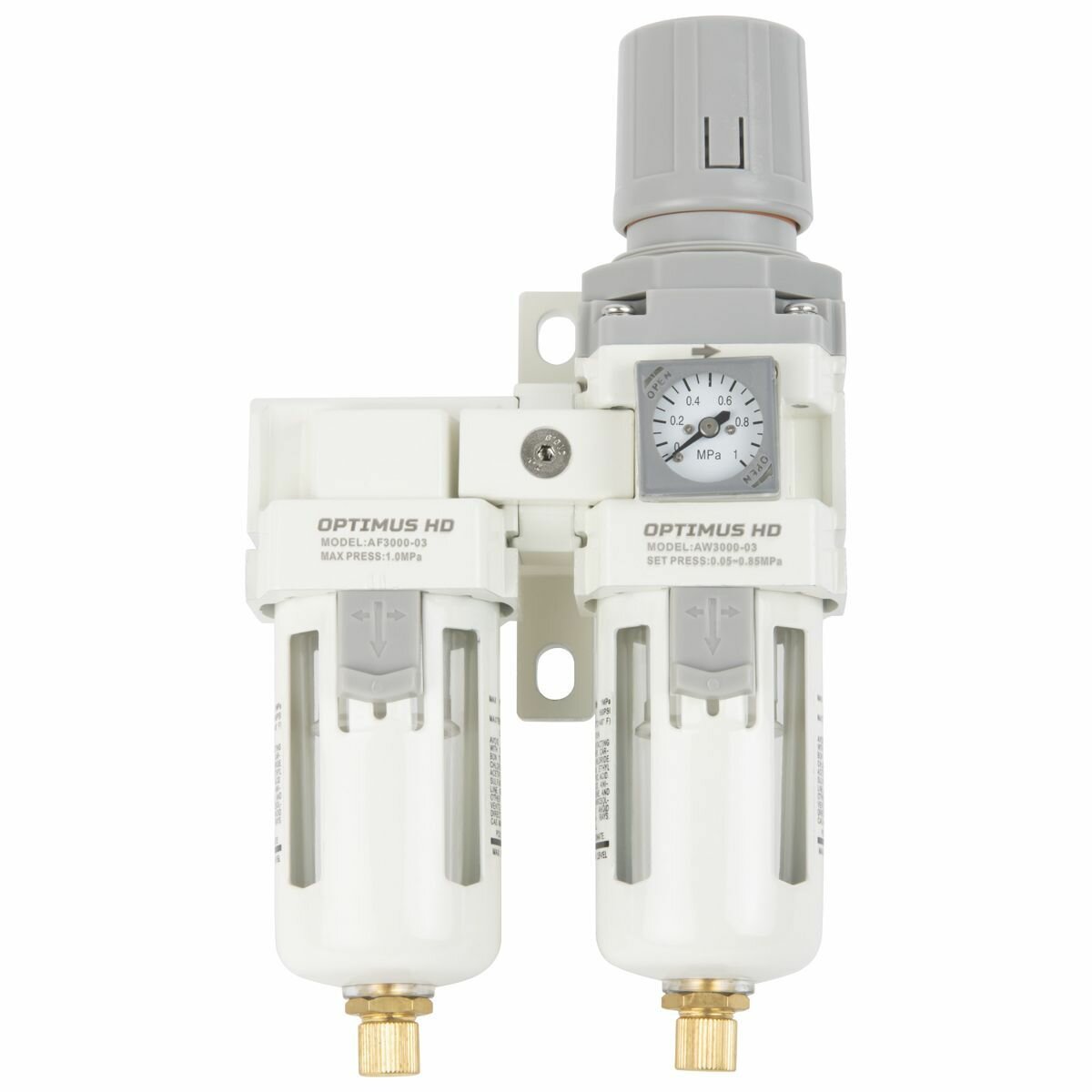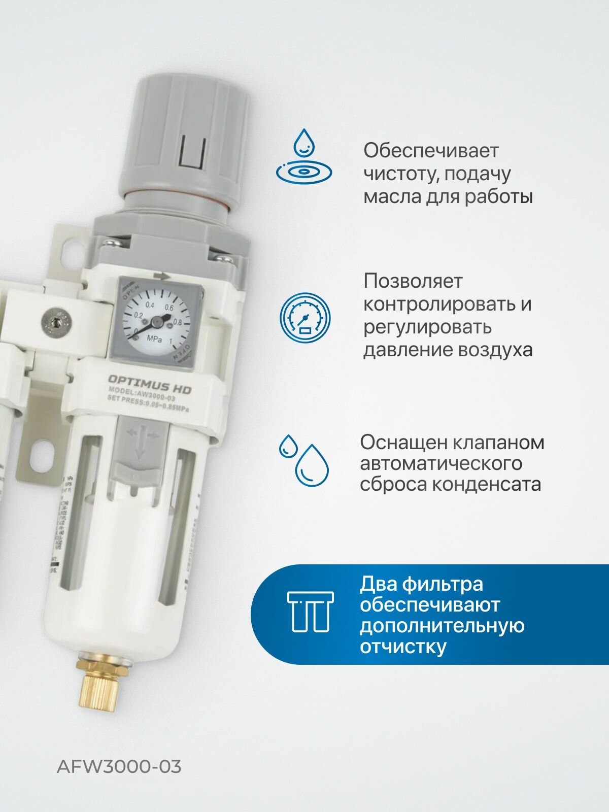 Блок подготовки воздуха 3/8" двухступенчатый с влагоотделителем, регулятором и манометром OPTIMUS HD AFW3000-03 информация: