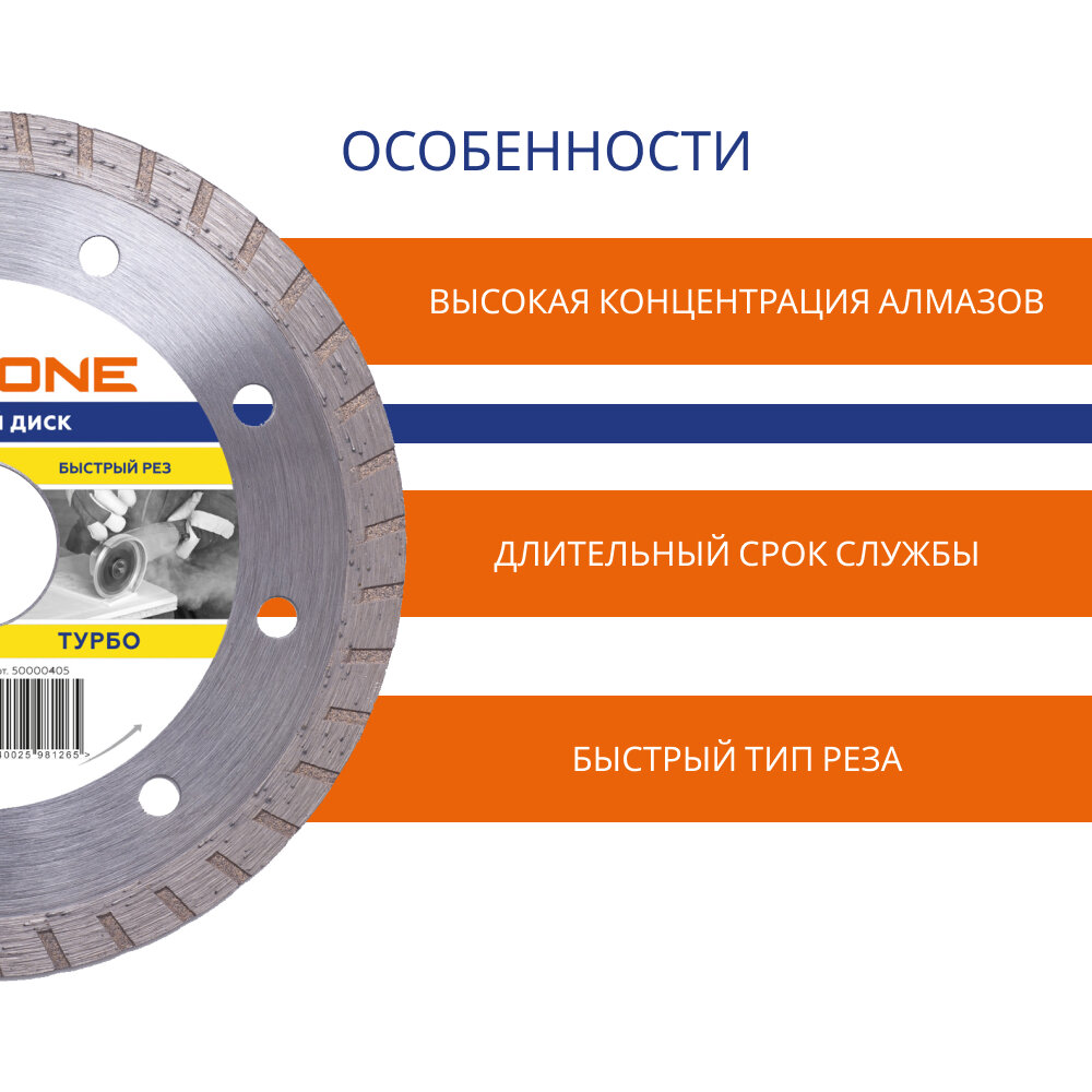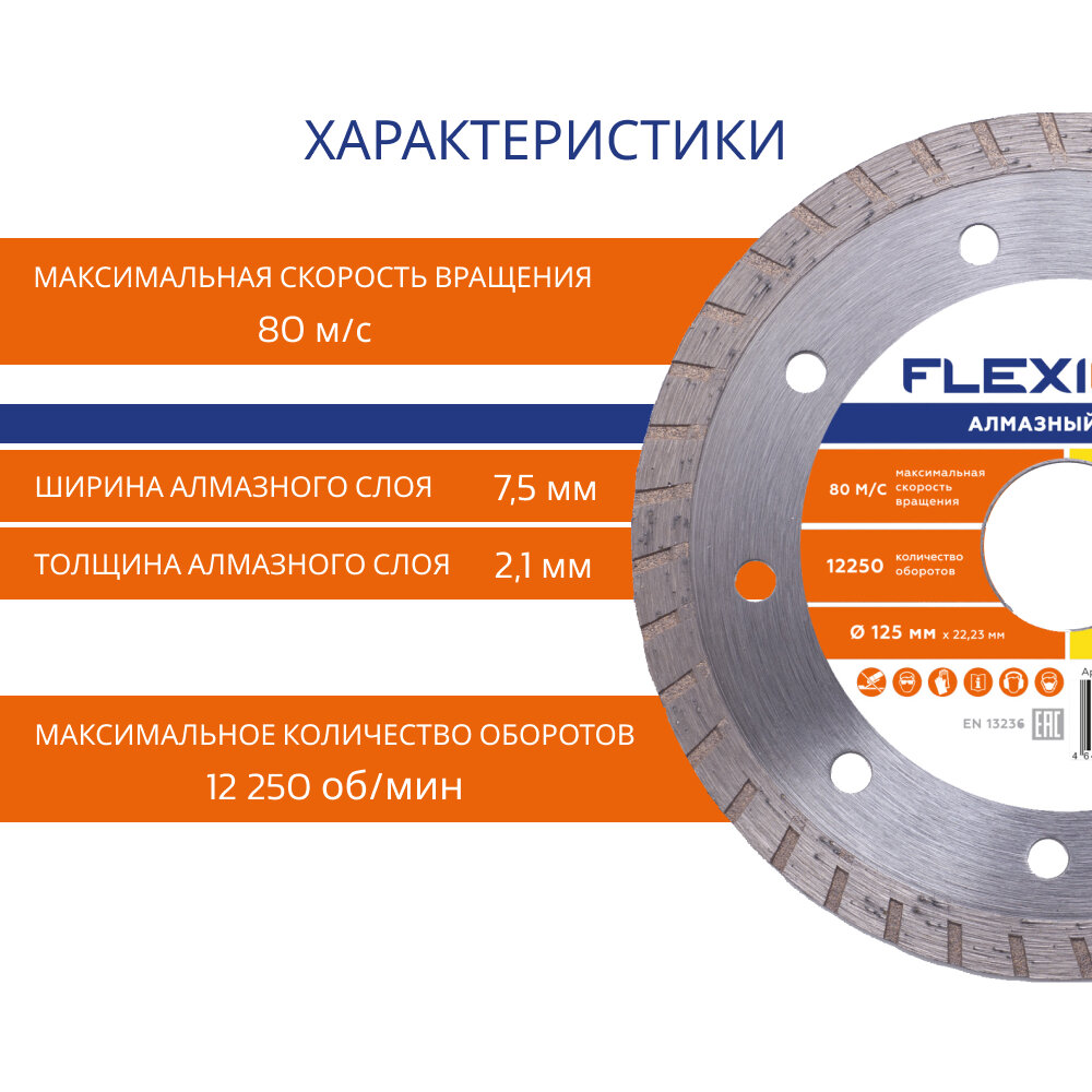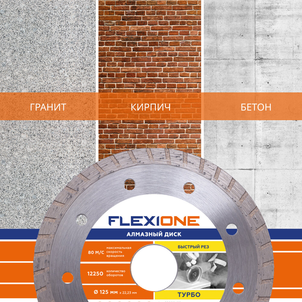 Алмазный диск с турбированной кромкой Ø125х22,23 мм (Общестроит. материалы) FlexiOne информация: