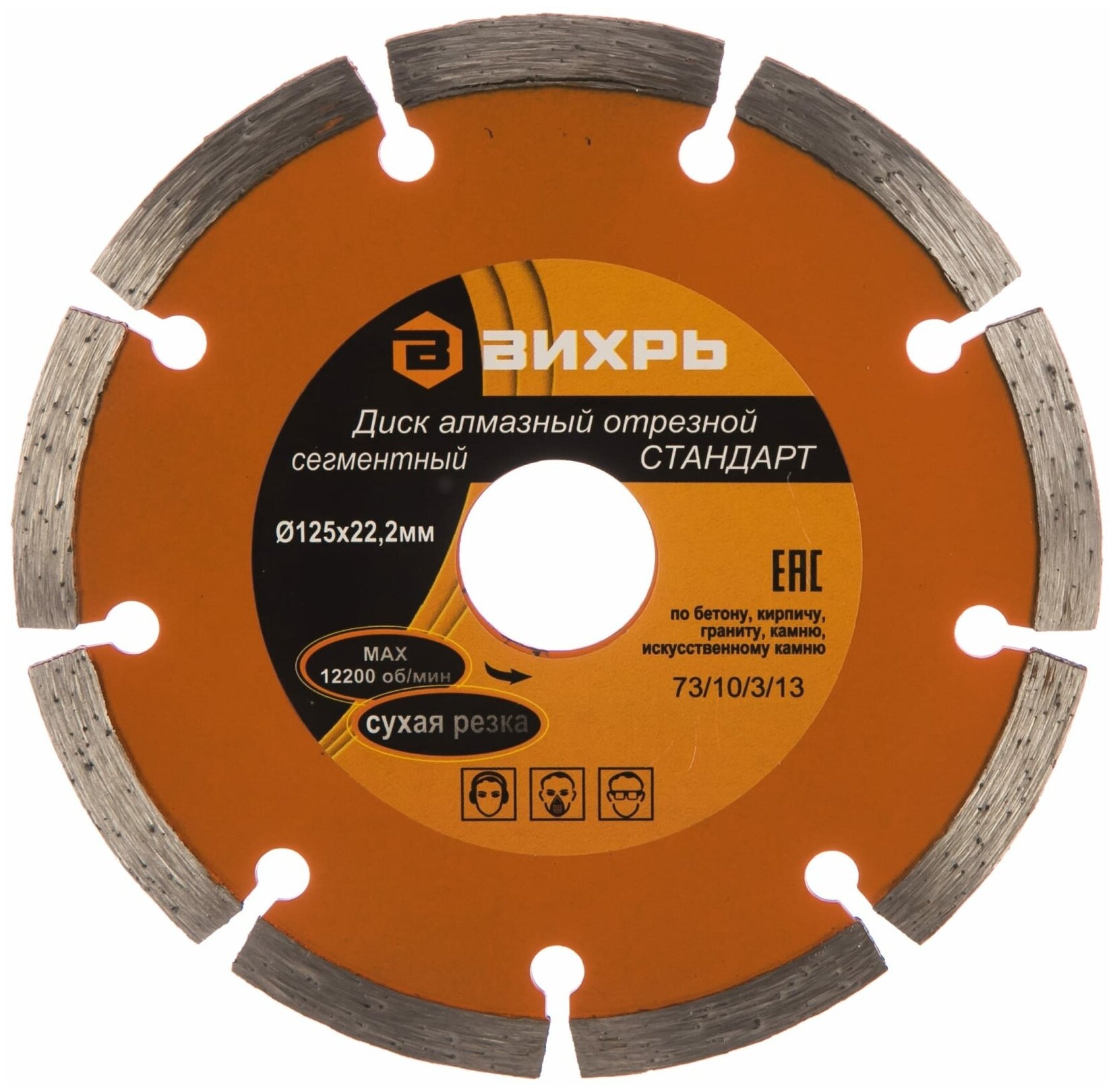 Диск алмазный отрезной сегментный стандарт, 125 х 22,2 мм, сухая резка Вихрь информация: