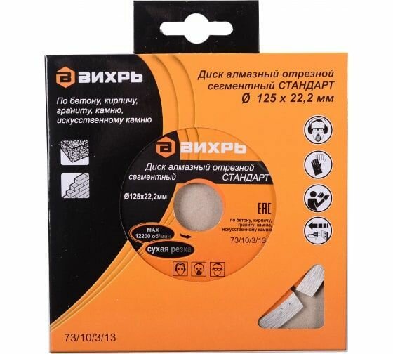 Диск алмазный отрезной сегментный СТАНДАРТ125 х 22,2 ммсухая резка Вихрь