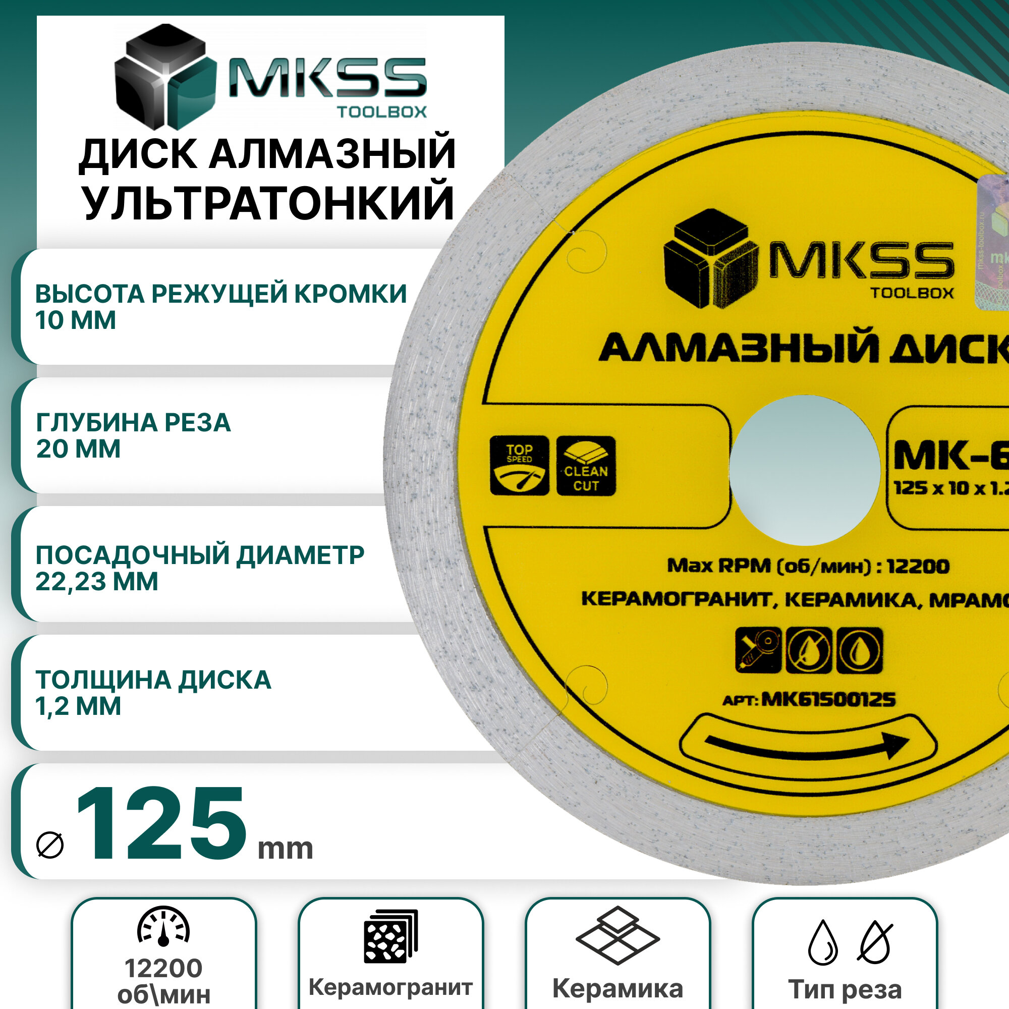 Диск алмазный MKSS по керамике и керамограниту 125*1,2*22.23 информация: