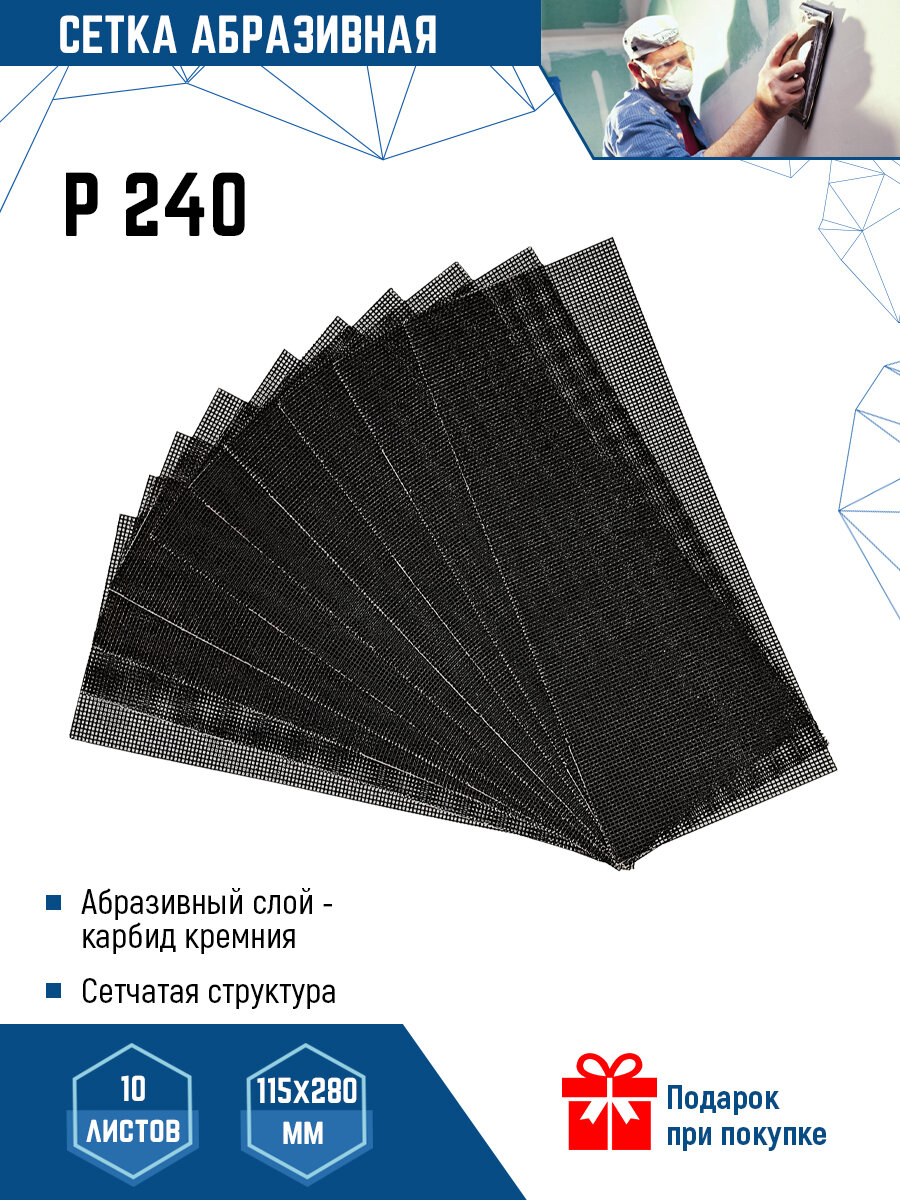 Сетка шкурка шлифовальная абразивная P240, 115х280 мм, 10 шт. информация:
