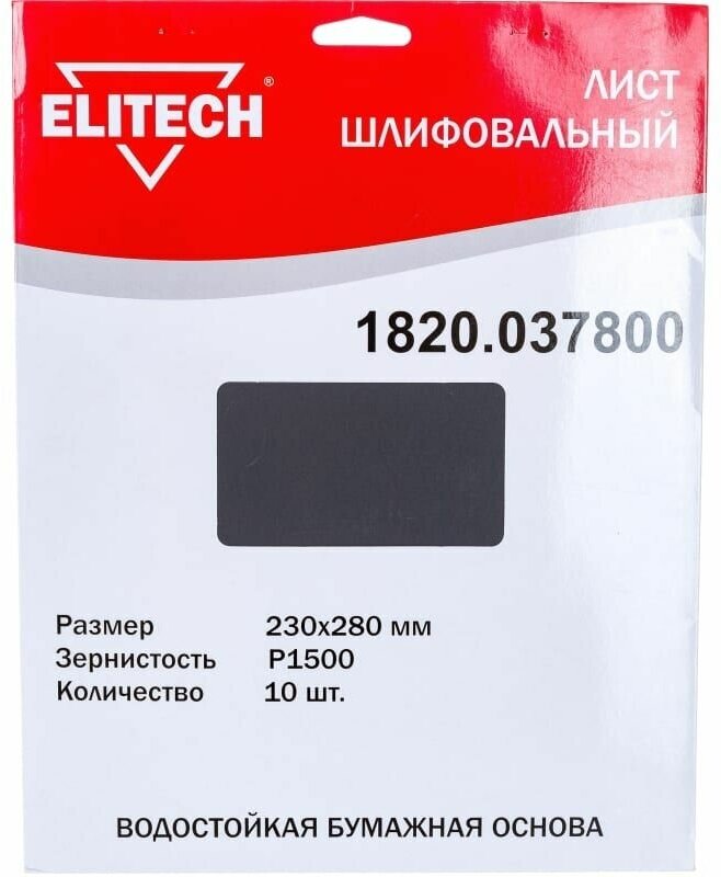 Лист шлифовальный ELITECH 1820.037800 230х280 P1500 10шт информация: