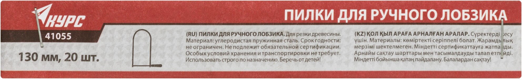 КУРС Курс Пилки для ручного лобзика курс, 130 мм, набор 20 шт