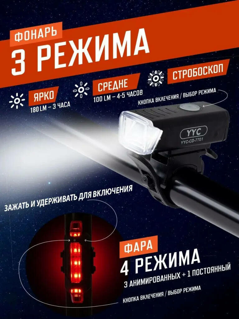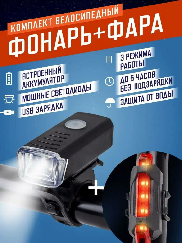 Фонарь велосипедный передний и задний / комплект велосипедных фонарей