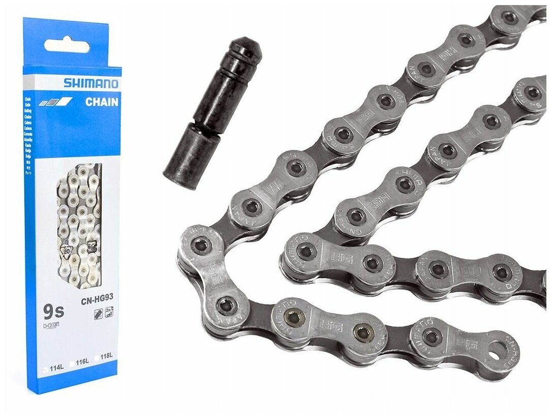 | Дополнительная информация | Цепь Shimano HG93, - эффективная и долговечная 9-скоростная цепь, совместимая с кассетами любых производителей. Сверхузкая конструкция для четкого переключения и бесшумной работы. Долговечность достигается за счет оцинкованных звеньев . Ампульный соеденительный пин в комплекте Вес без упаковки: 304г (для 116 звеньев) |