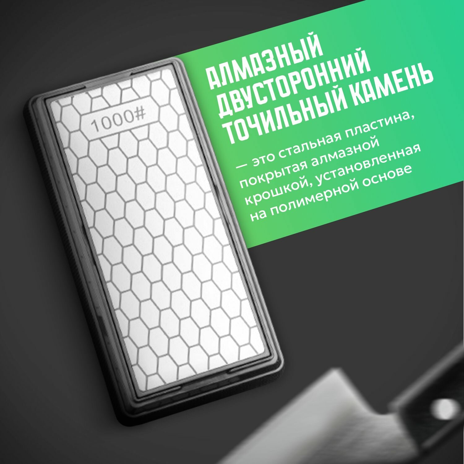 10 цен на Kimatsugi / Алмазный точильный камень для ножей двухсторонний. Зернистость ножеточки 400# / 1000#. Универсальная точилка - брусок на пластиковой подставке с крышкой
