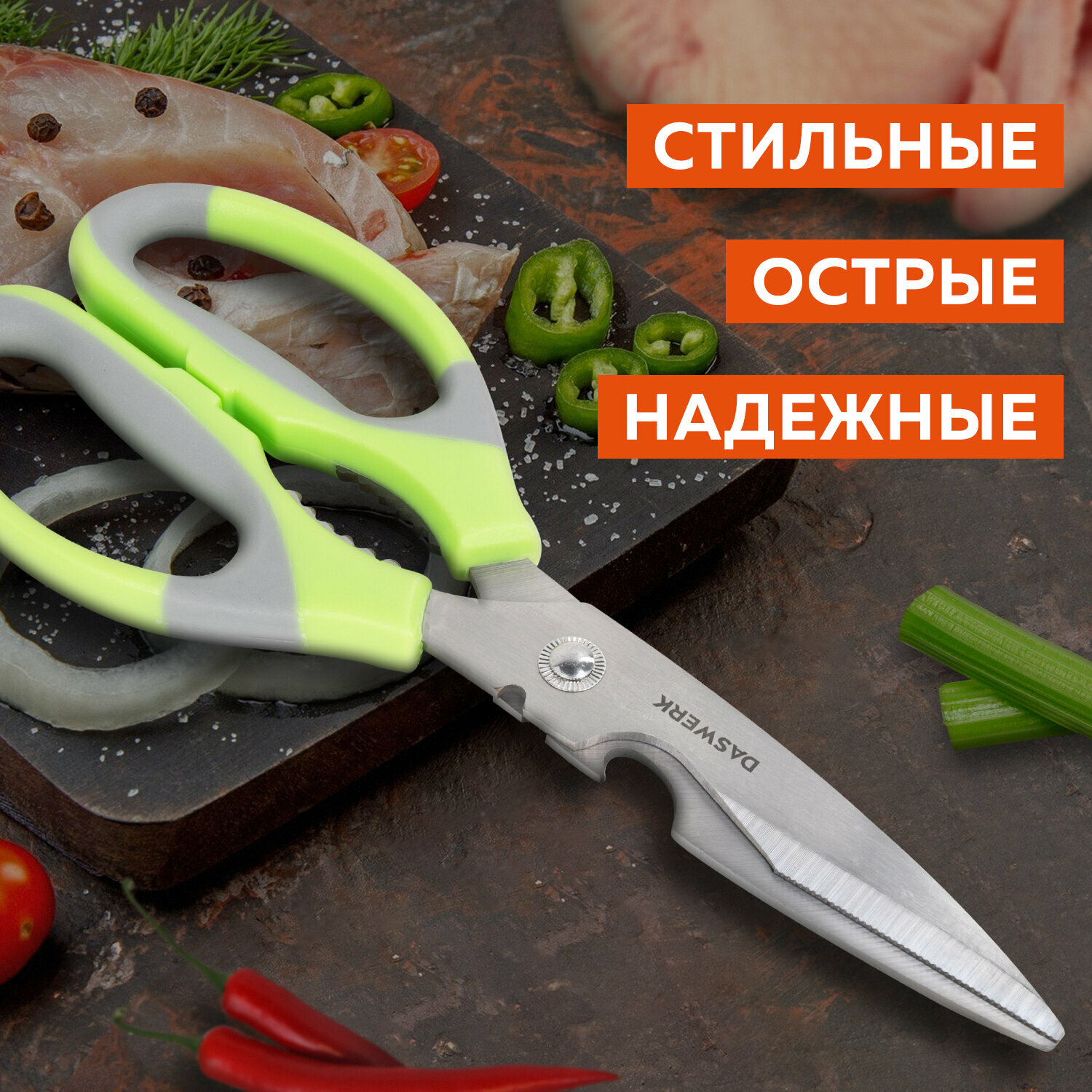 Отзывы на Ножницы кухонные Daswerk, 210 мм, с орехоколом, открывашкой, зазубренным лезвием, 608903