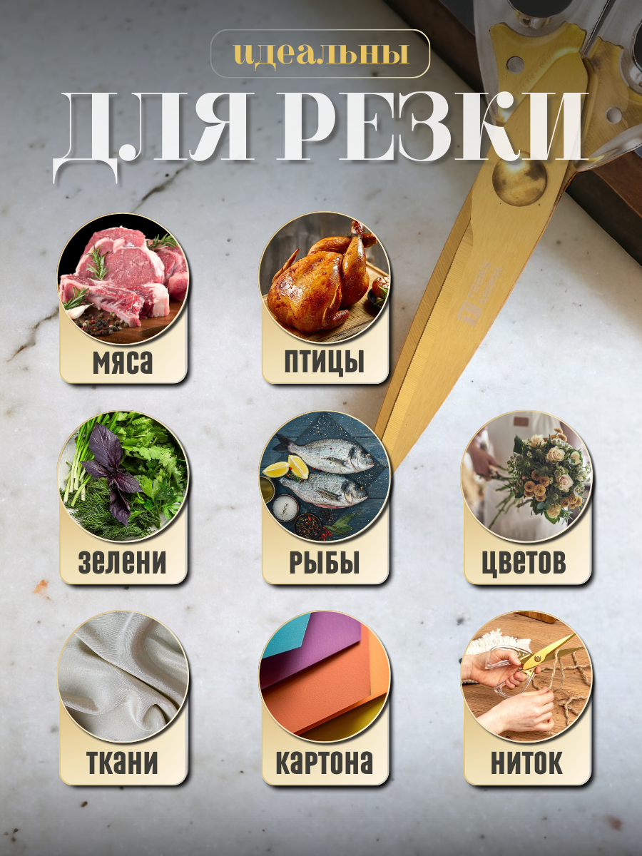 Отзывы на Ножницы кухонные/ ножницы универсальные стальные с титановым покрытием, длина лезвия 8 см/золотые ножницы