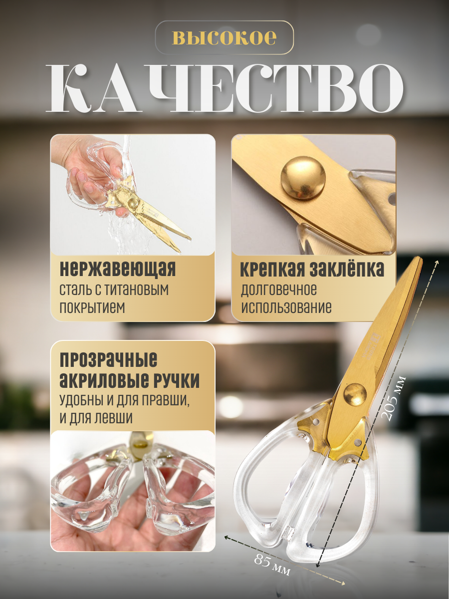 Ножницы кухонные/ ножницы универсальные стальные с титановым покрытием, длина лезвия 8 см/золотые ножницы информация: