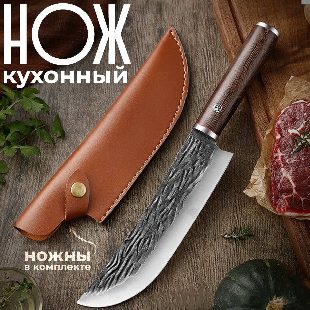 10 цен на Нож кухонный универсальный, поварской шеф нож для мяса, шинковки, для хлеба. Разделочный нож топорик, тесак с чехлом.