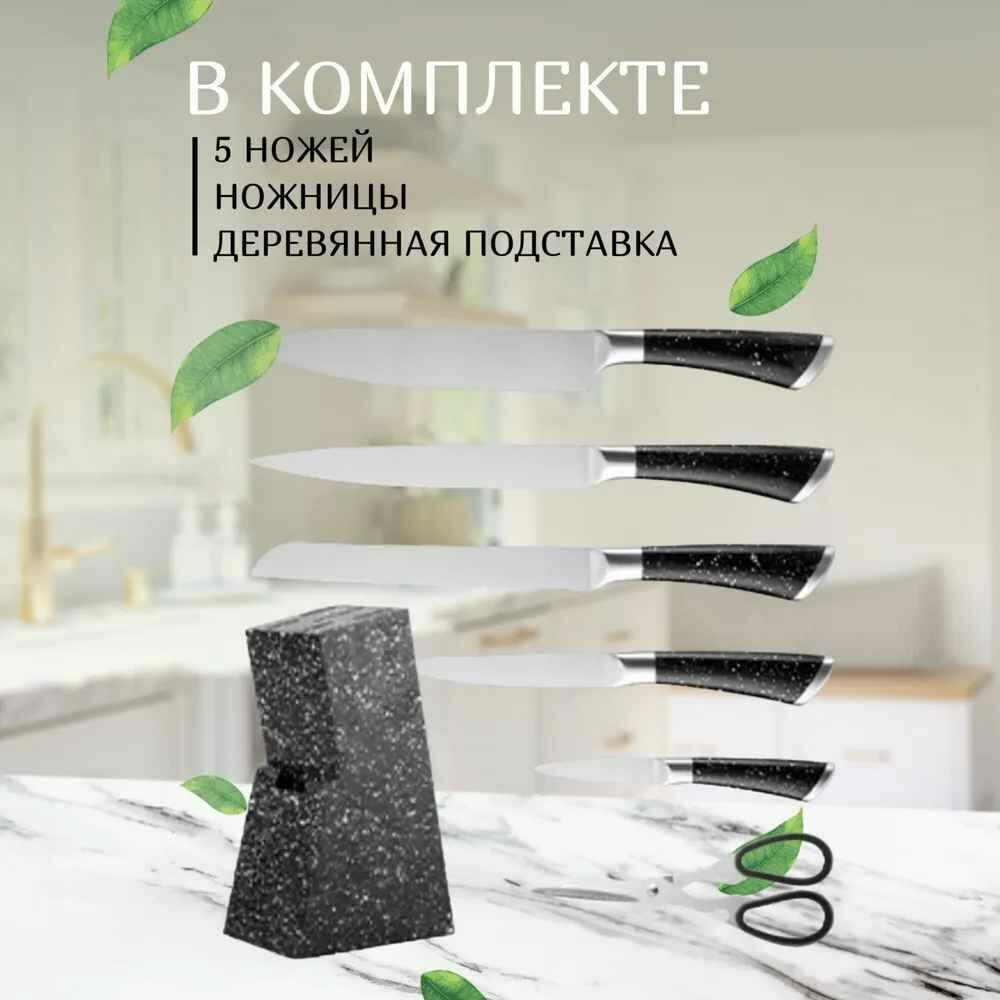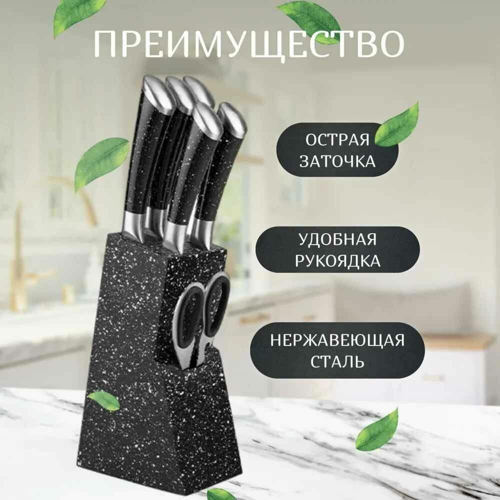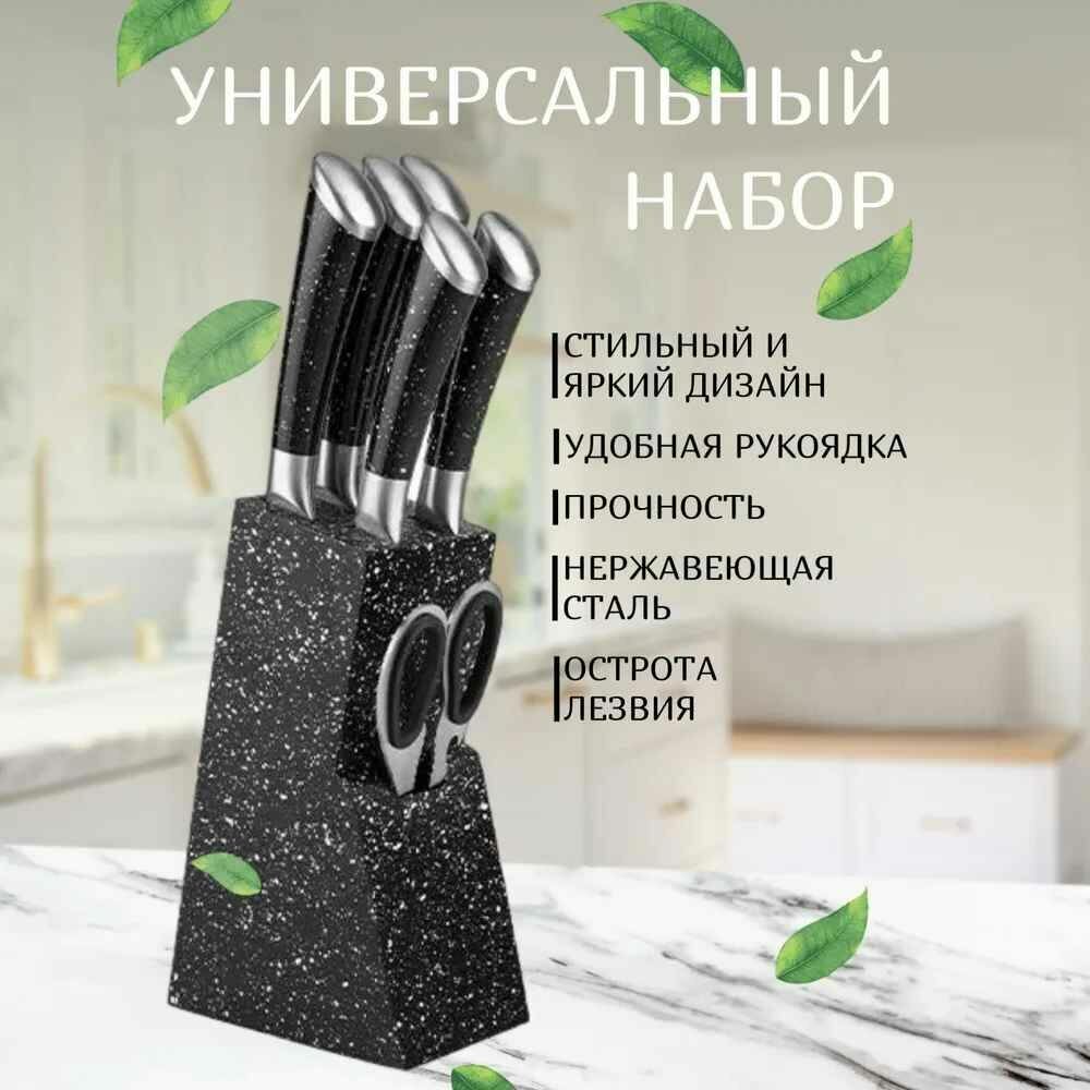 Набор кухонных ножей на подставке - 7 предметов, черный от Shark-Shop информация: