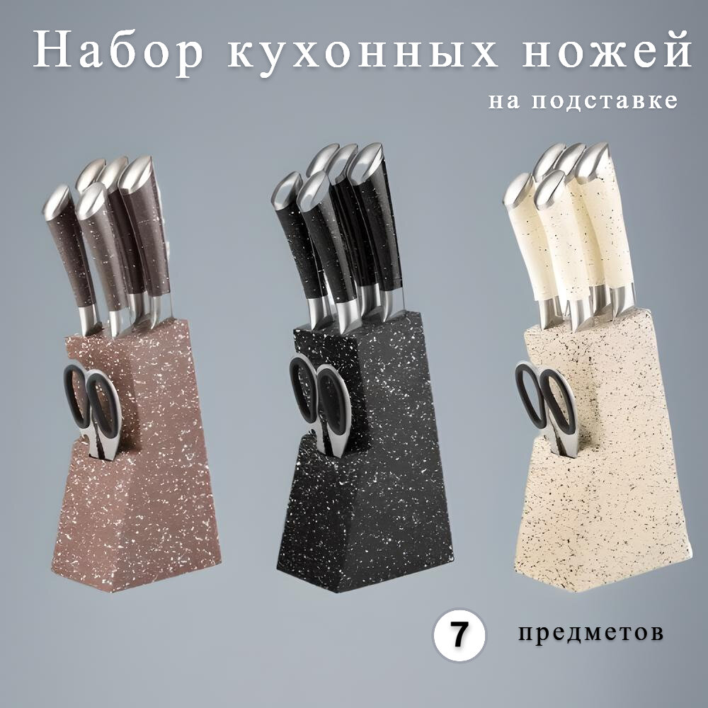 10 цен на Набор кухонных ножей на подставке - 7 предметов, черный от Shark-Shop
