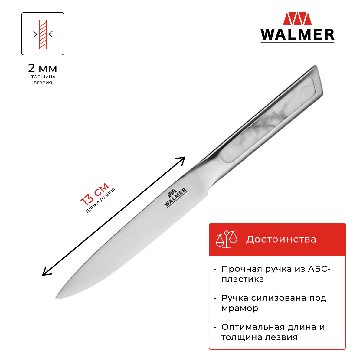 Нож универсальный Walmer Marble 13 см, цвет стальной информация: