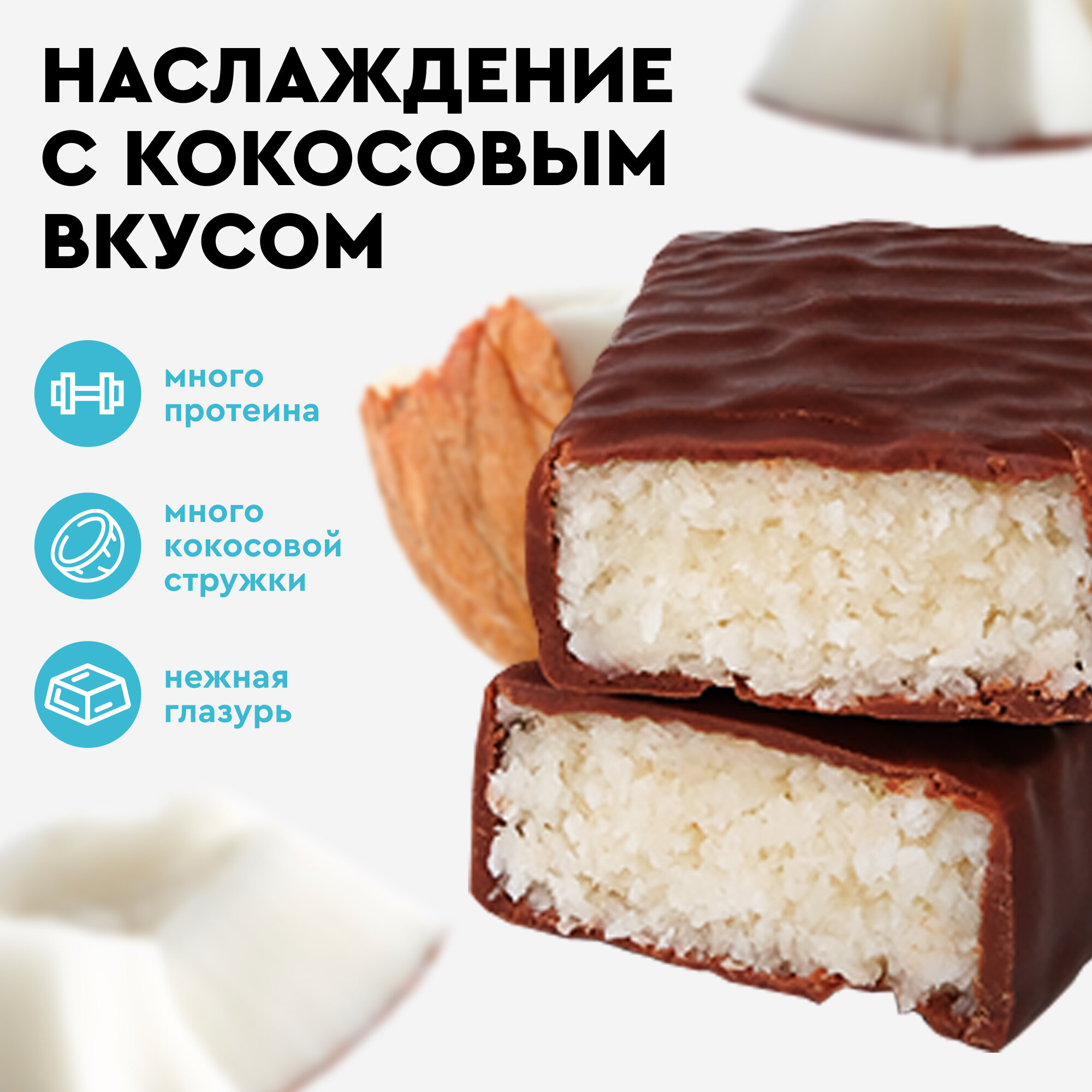 Отзывы на Протеиновые батончики ProteinRex Snex Кокос 12шт без сахара, 193 ккал десерт, спортивное питание, ПП еда, спортивные батончики