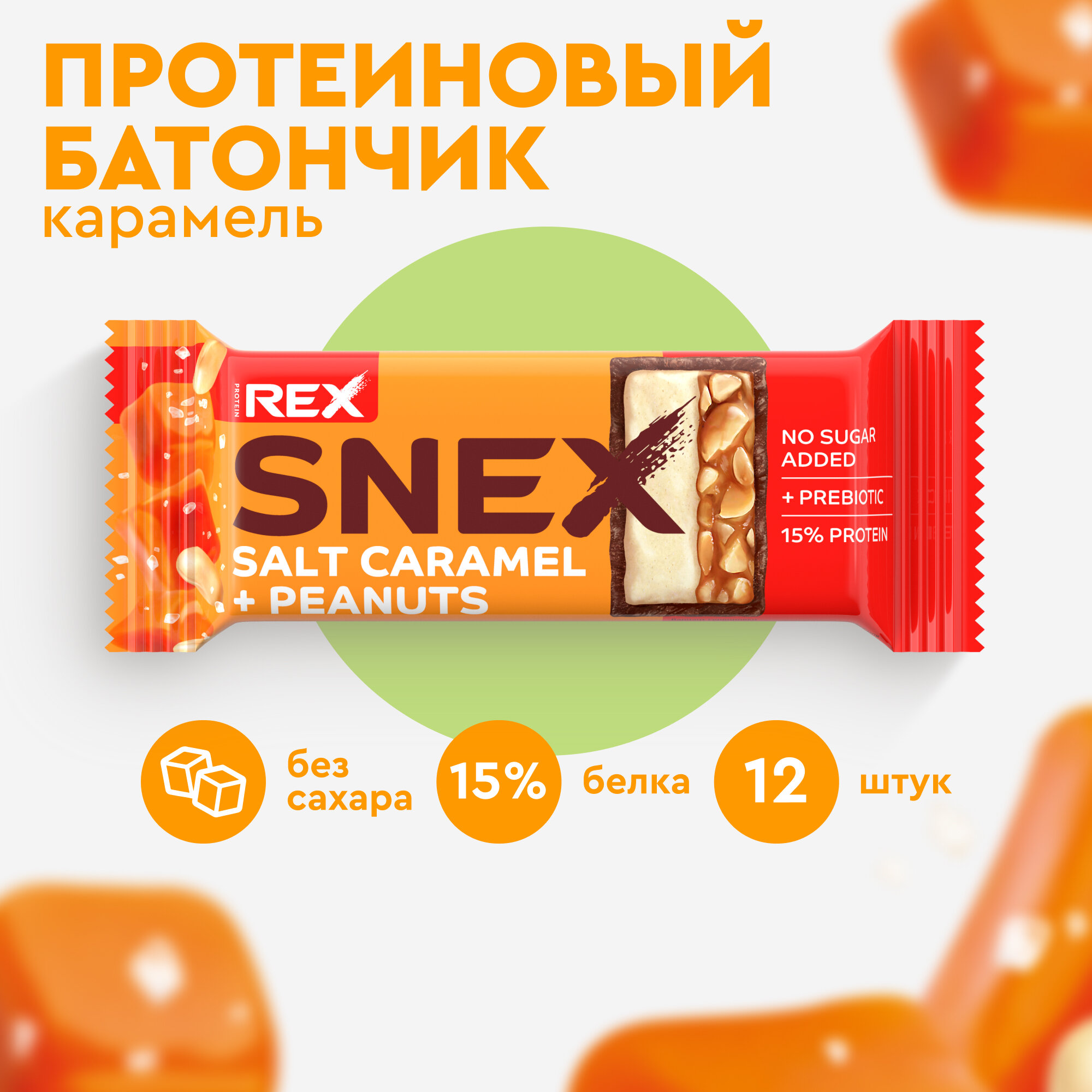 10 цен на Протеиновые батончики ProteinRex Snex Соленая карамель 12шт без сахара, десерт, ПП еда, спортпит
