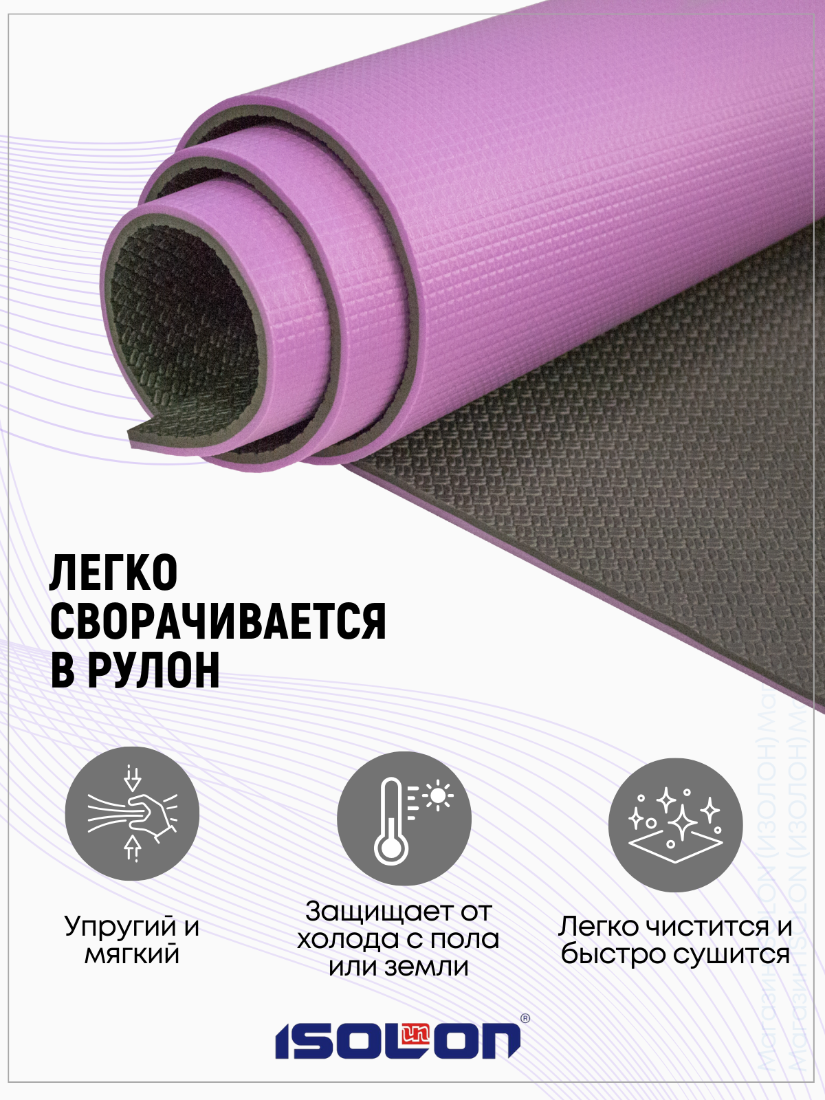 Отзывы на Коврик спортивный для фитнеса и йоги Спорт Универсал 8, 1800х600х8 лавандовый/серый