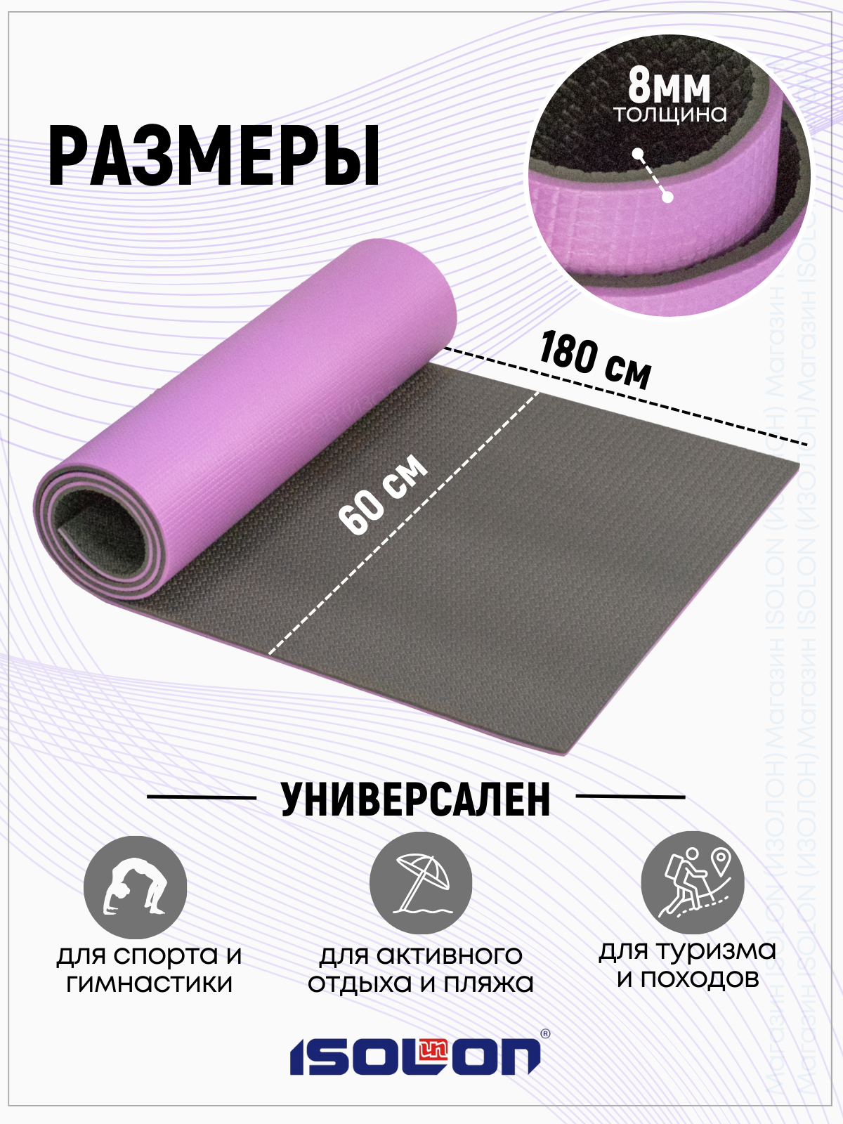 Коврик спортивный для фитнеса и йоги Спорт Универсал 8, 1800х600х8 лавандовый/серый информация: