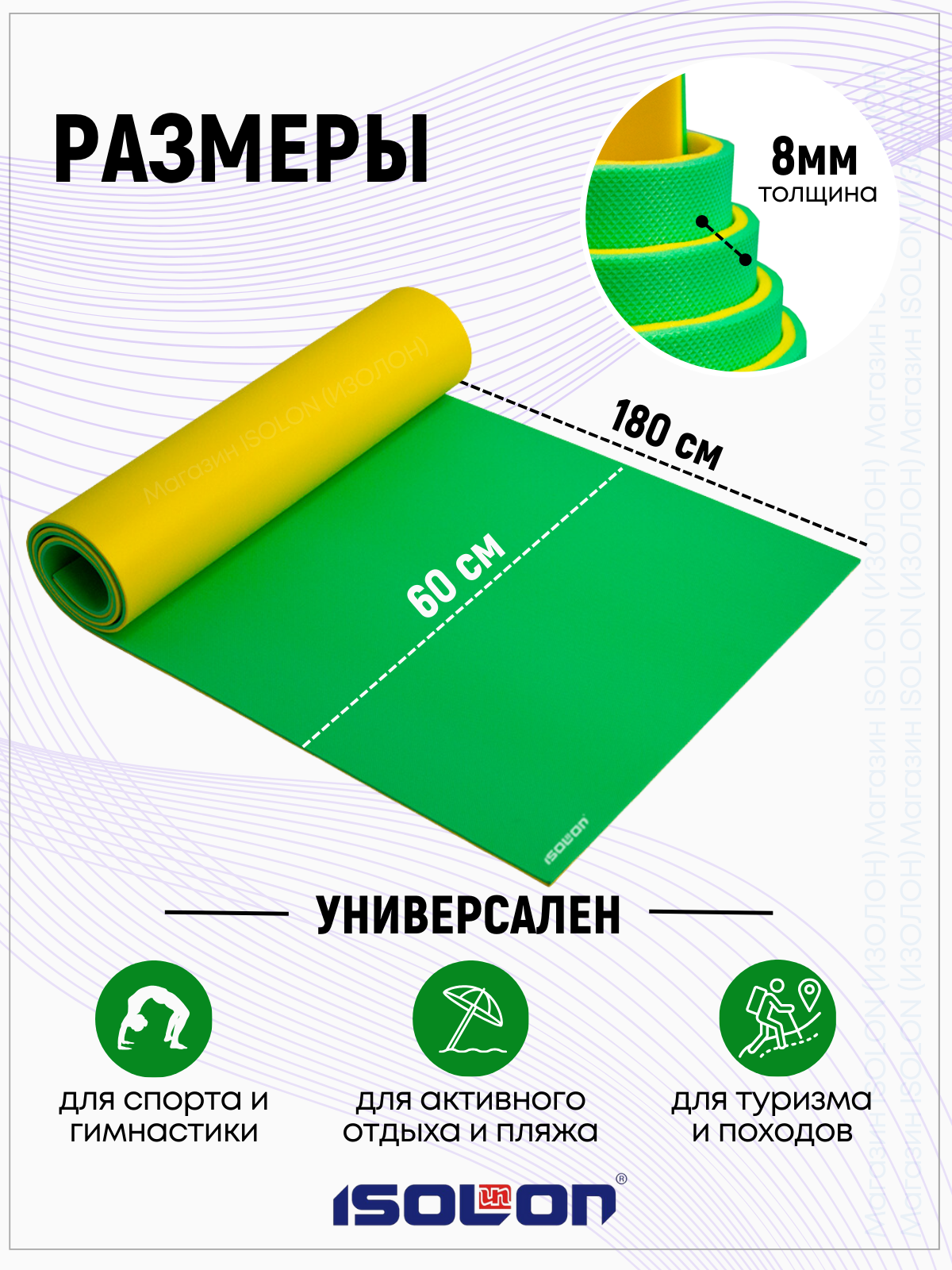 Коврик спортивный для фитнеса и йоги Спорт Универсал 8, 1800х600х8 зеленый/желтый информация: