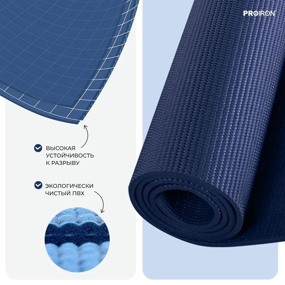 10 цен на Коврик для фитнеса, PROIRON, нескользящий, размеры 1730*610*4мм, ПВХ, темно-синий